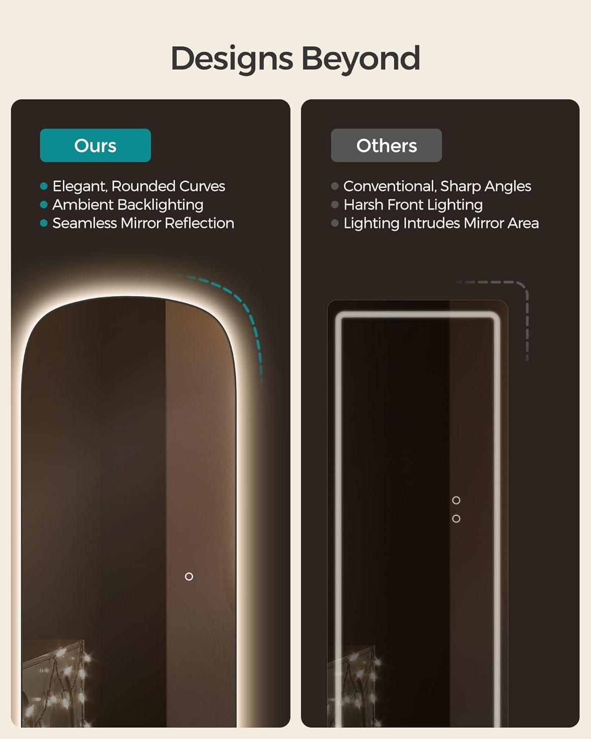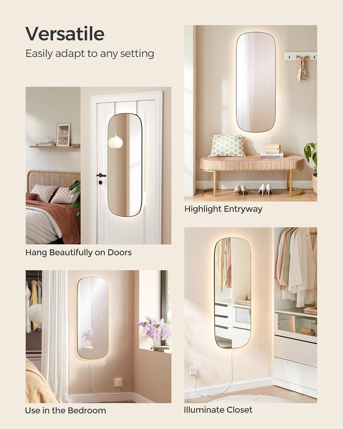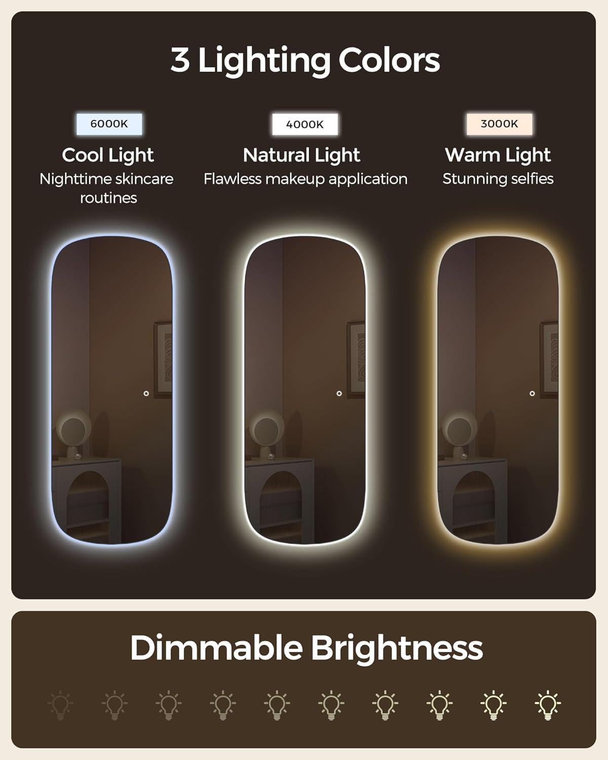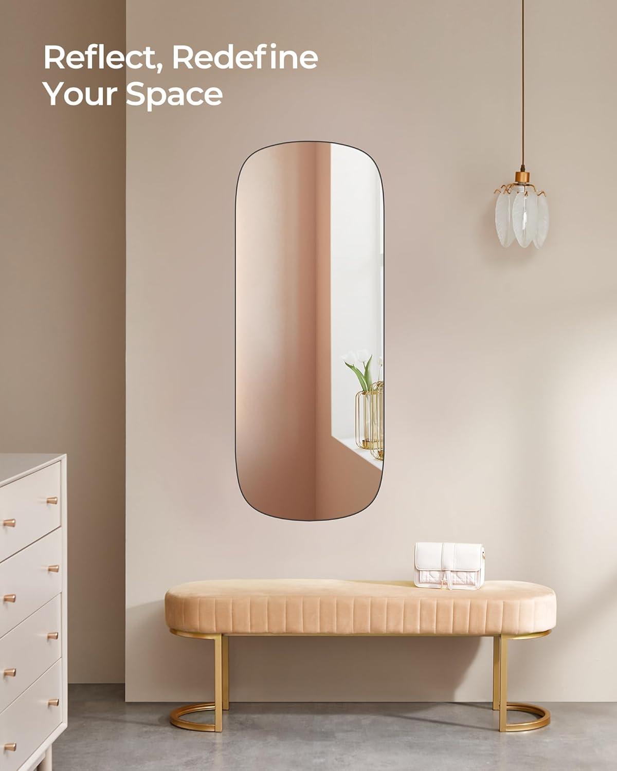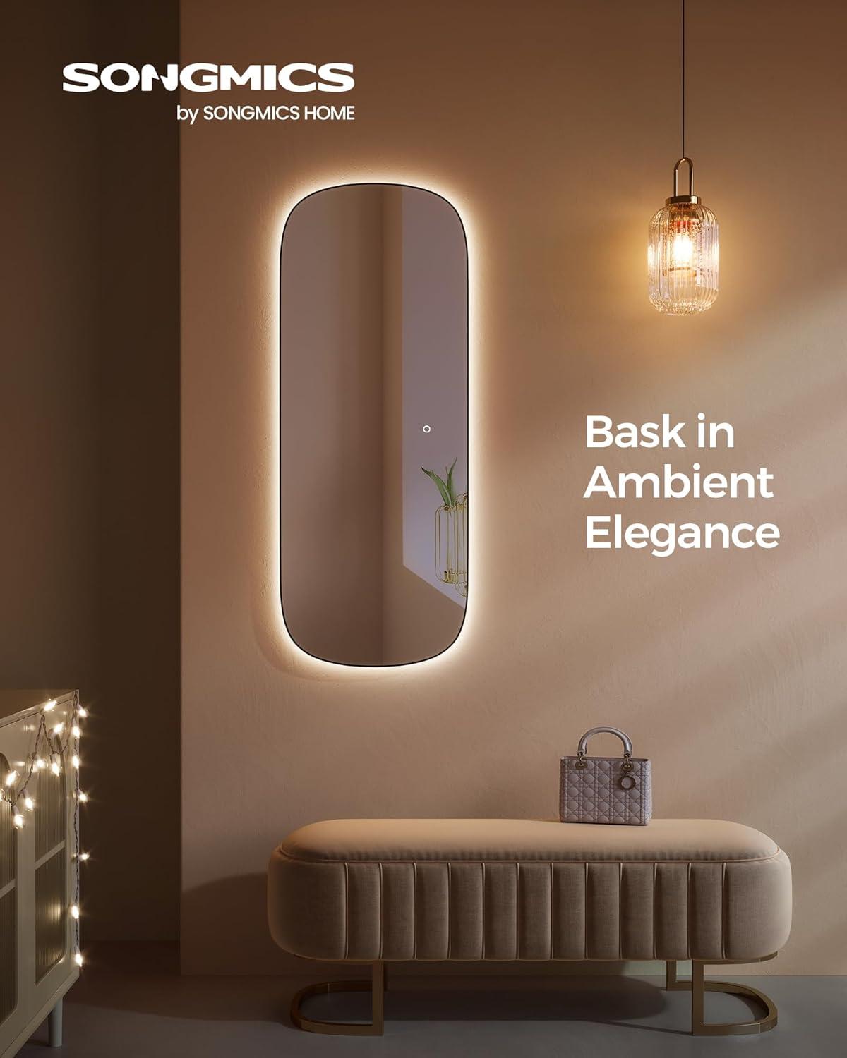 [LED Frameless Full-Length Door Wall Mirror] This wall mirror boasts a modern and elegant silhouette, creating an eye-catching mirror that doubles as wall art. With its minimalist arc design, it transcends traditional square shapes to redefine sophistication