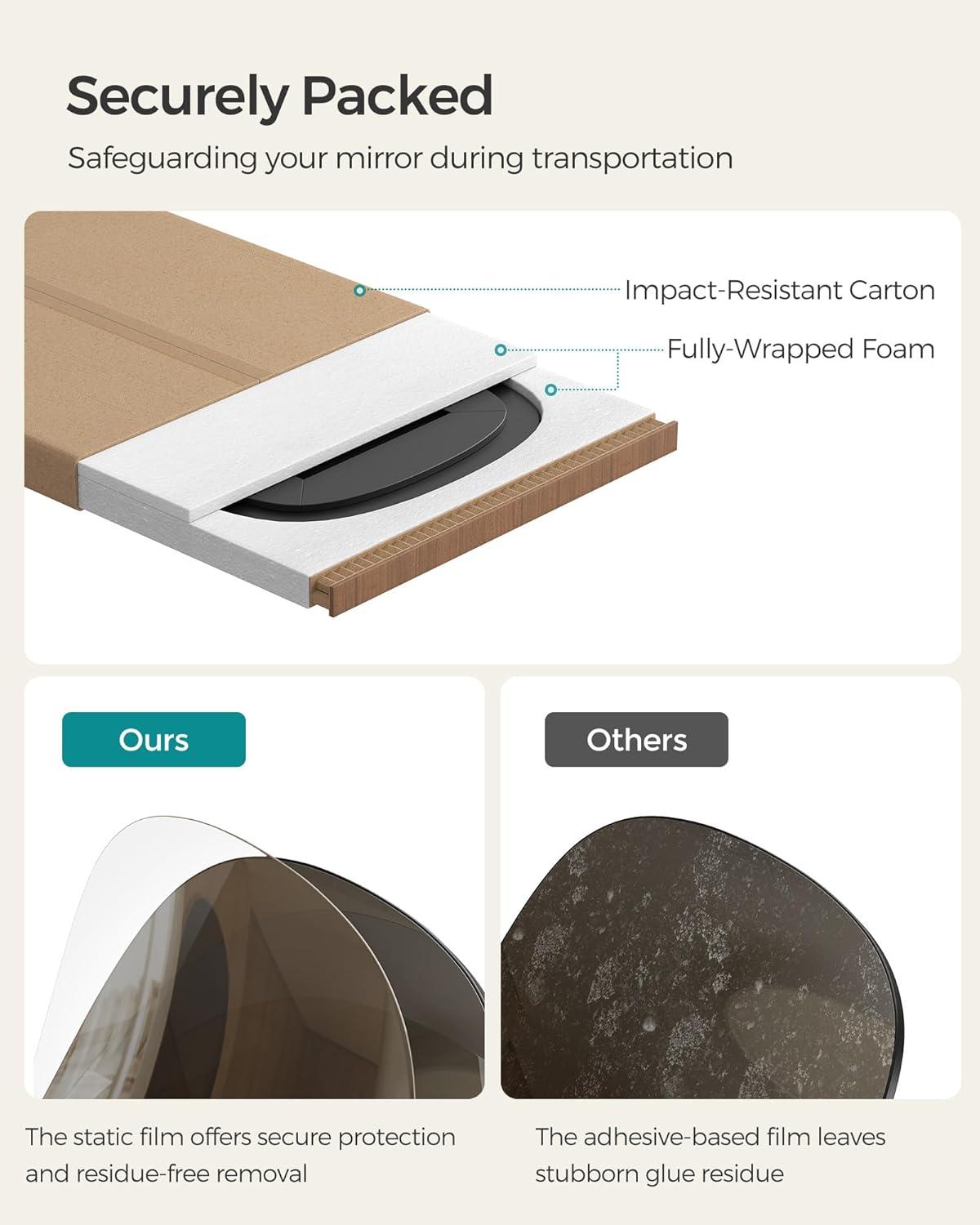 [Delivered Safe and Sound] With a robust carton and comprehensive foam packaging, coupled with the added protection of electrostatic film adsorption, we ensure your frameless mirror arrives unscathed and ready to impress