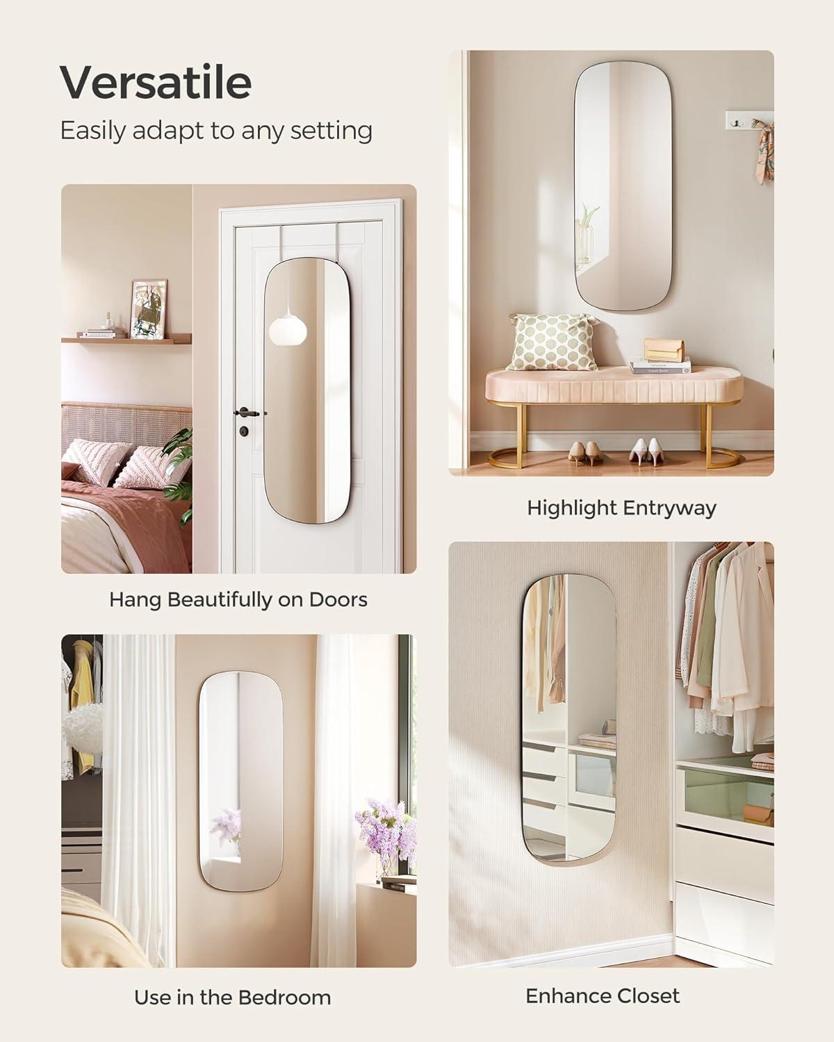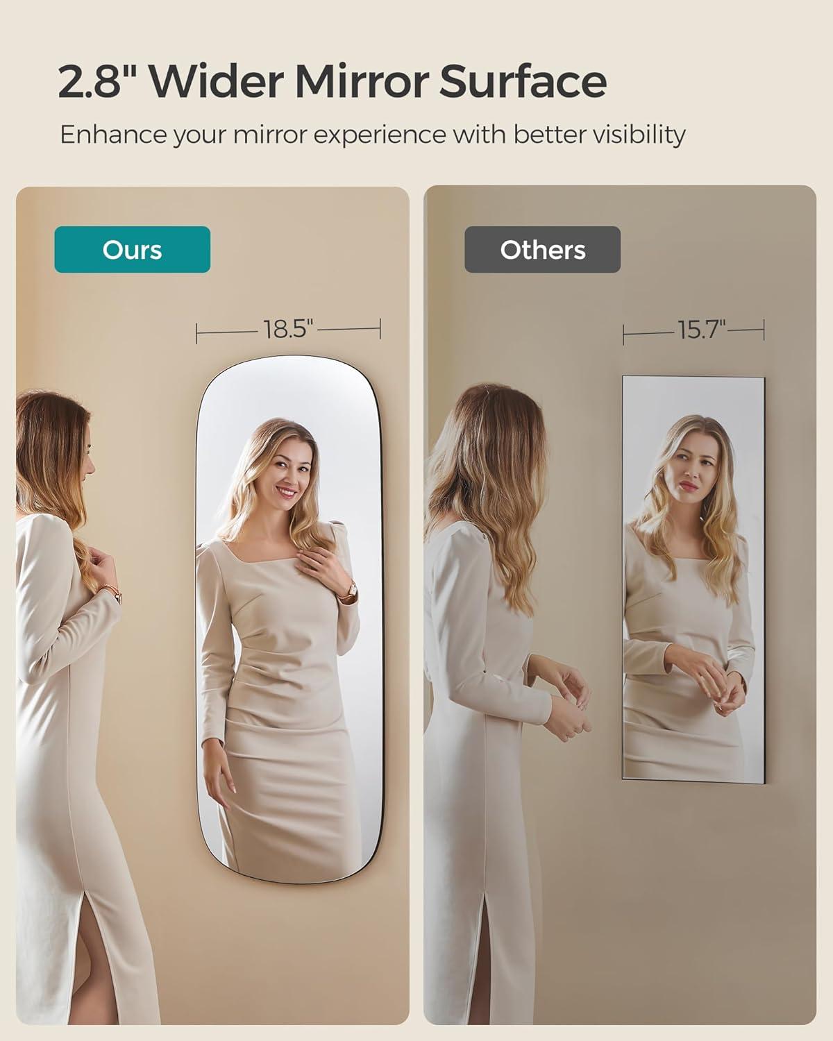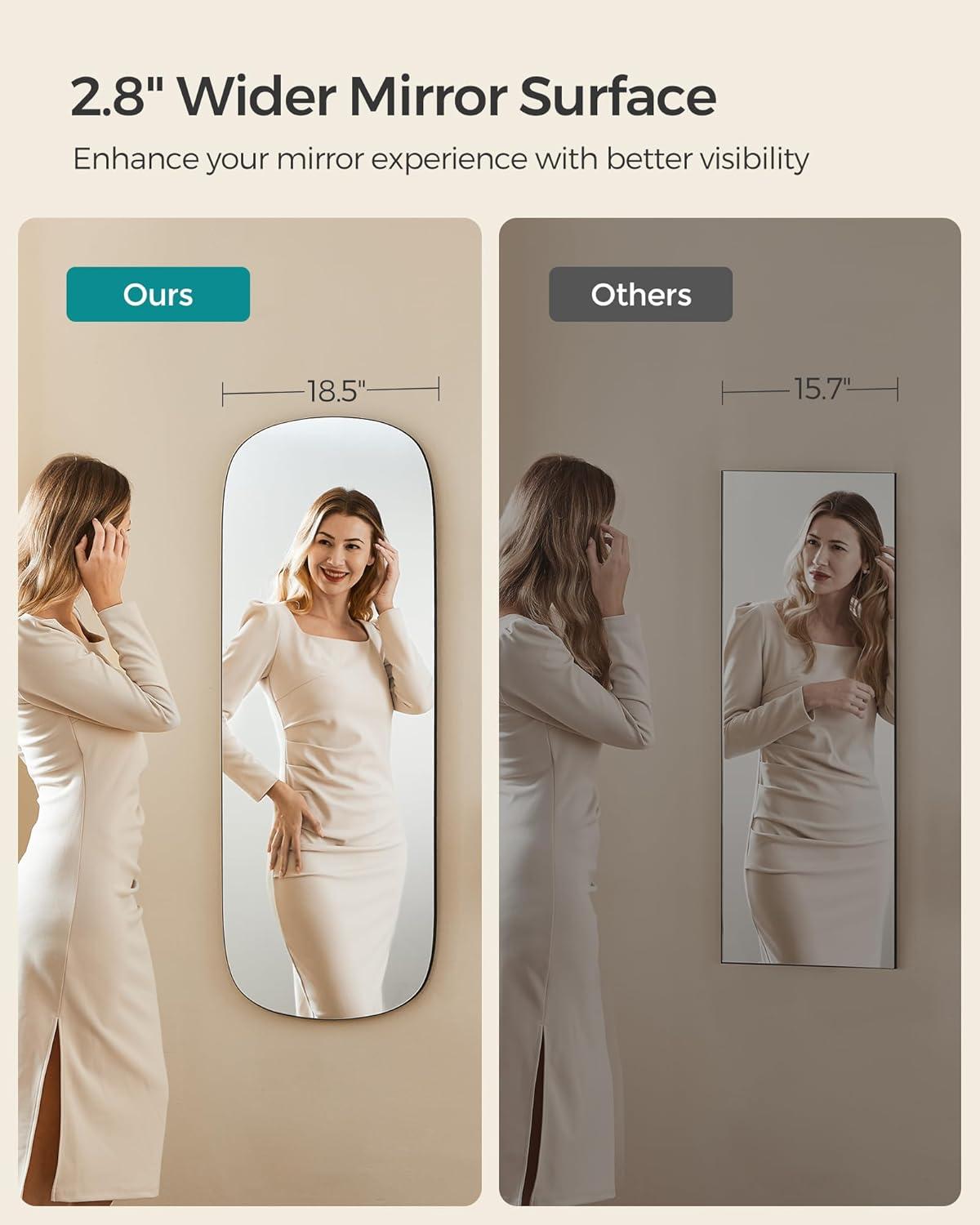 [Door or Wall Mounted] The included assembly kit allows you to hang the full-length mirror on a door or mount it on a wall, adapting easily to your interior design while saving precious space