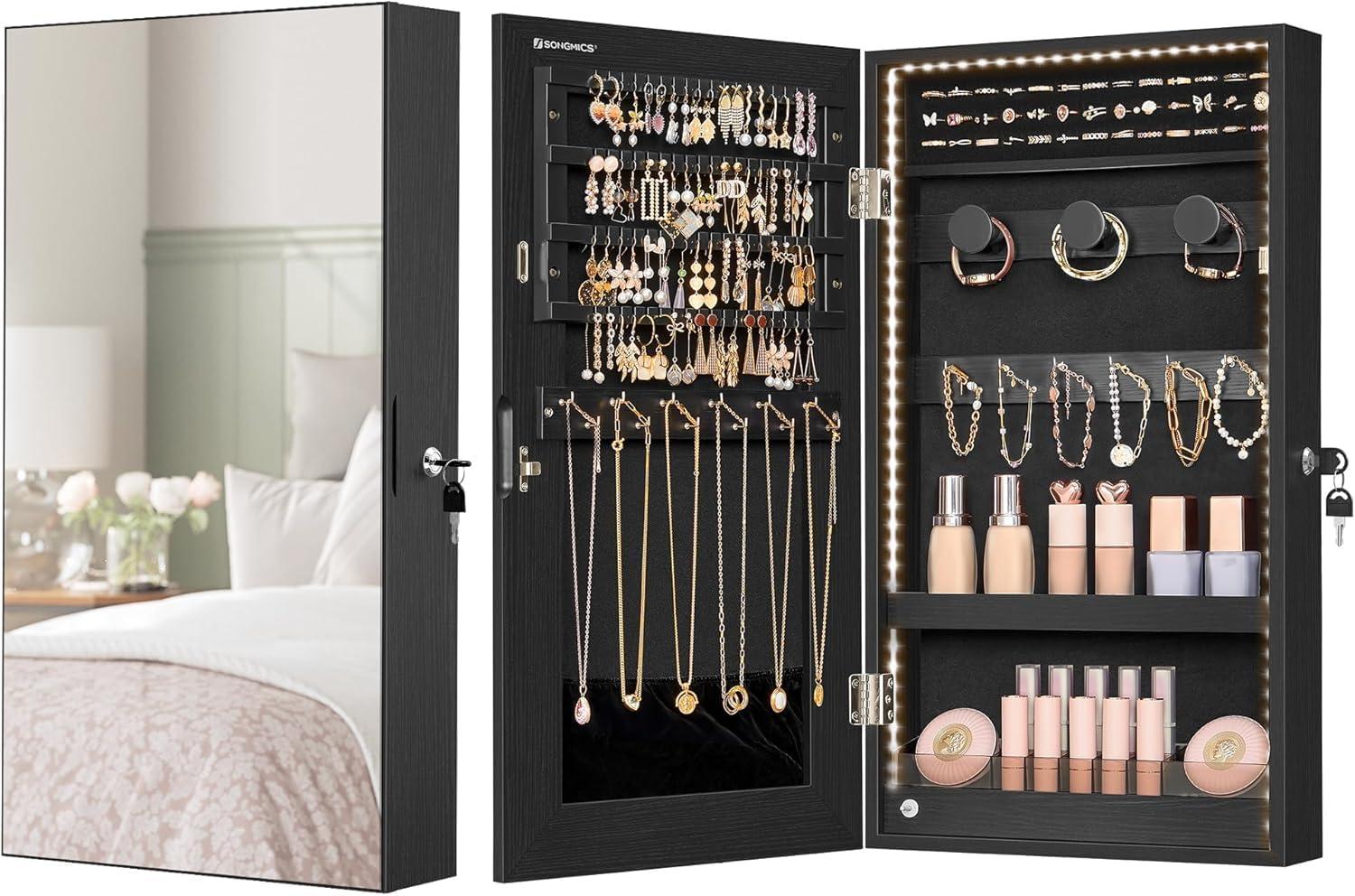 [Practical Jewelry Cabinet] Boasting more functional areas for various types of jewelry, this jewelry cabinet helps you say goodbye to the lost earrings and tangled necklaces