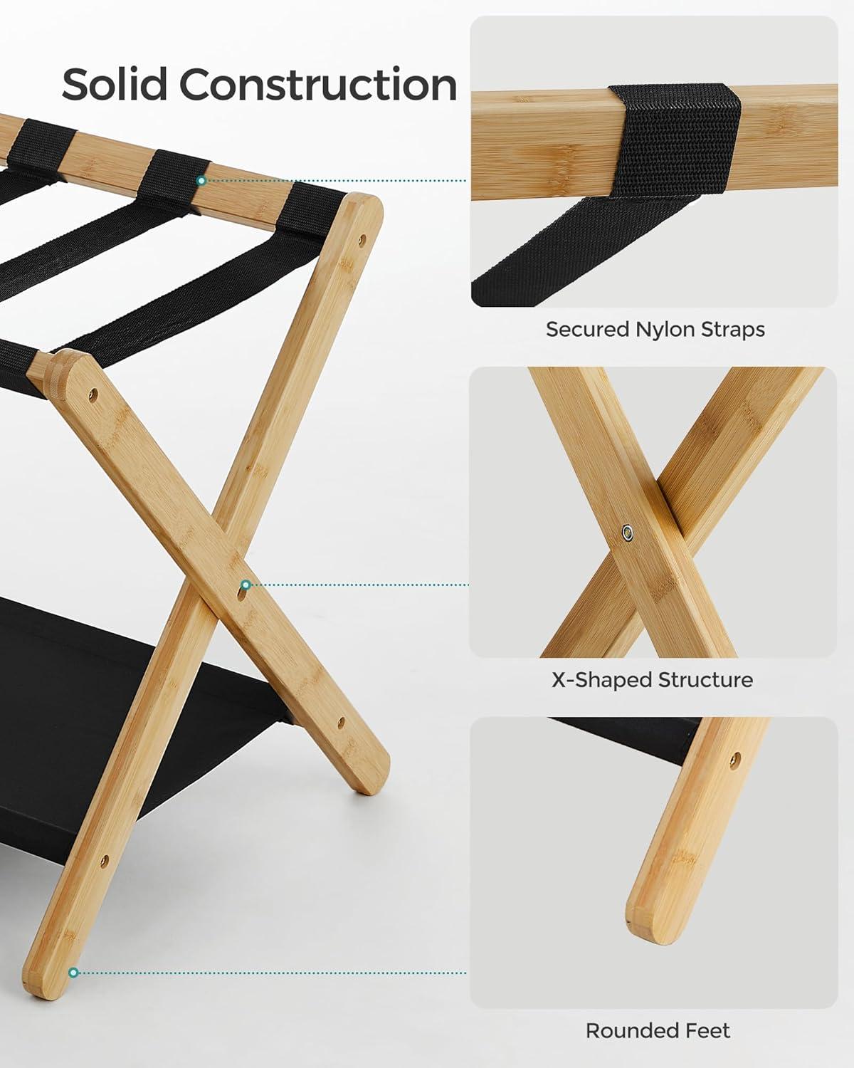SONGMICS Luggage Rack, Bamboo Luggage Rack for Guest Room, Folding Suitcase Stand, for Hotel, Bedroom, Heavy-Duty, Holds up to 131 lb, Natural Beige URLR007N01(Natural Beige)