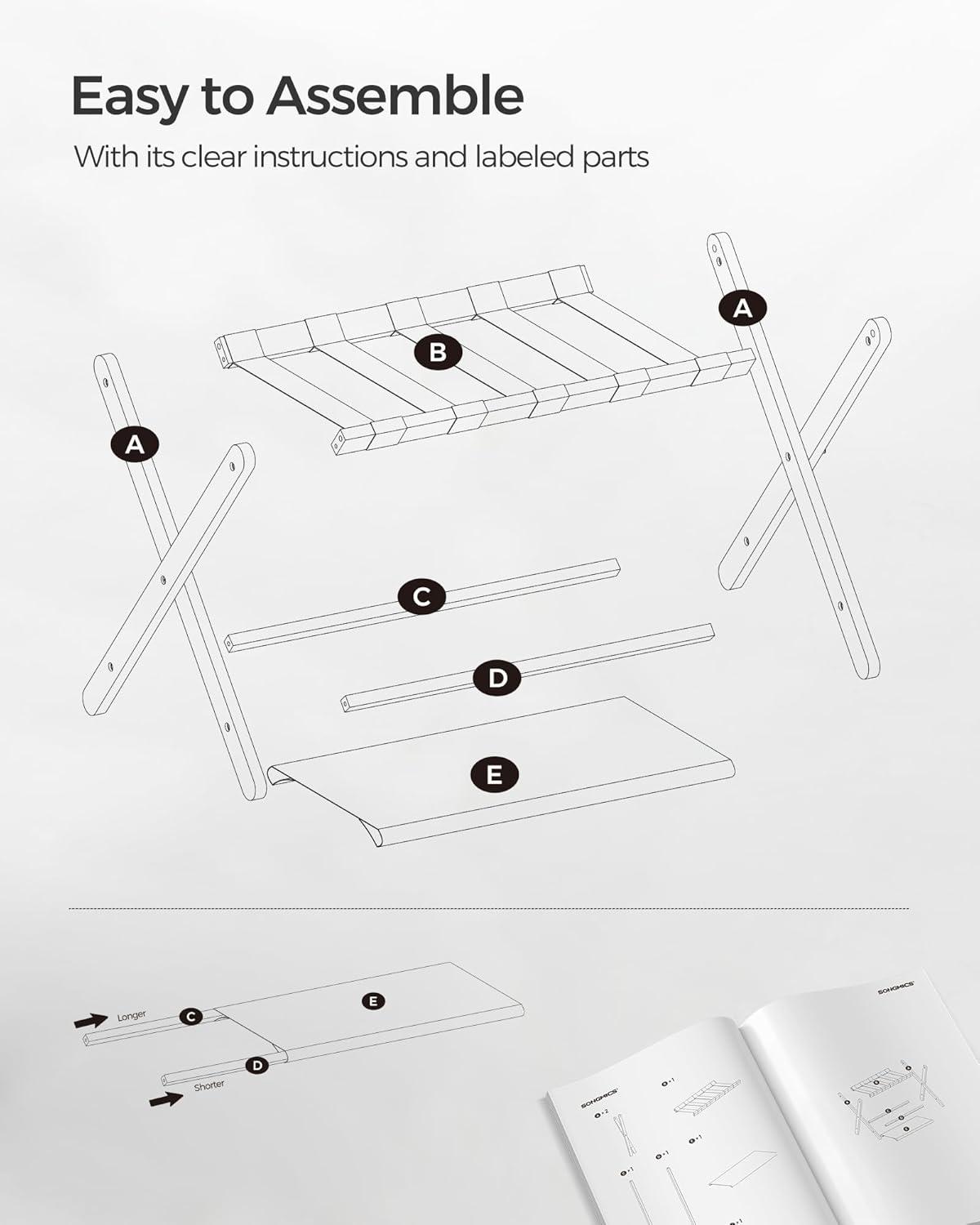 [Assembly Is a Breeze] Follow the instructions to connect the 4 corners of the structure with the included Allen key and only one type of screw so you can easily set up this suitcase stand. No more getting lost in nuts and bolts!