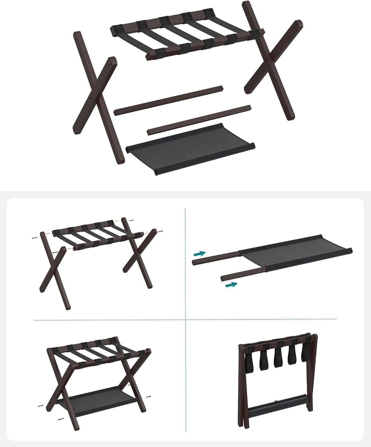 imageSONGMICS Luggage Rack Folding Suitcase Stand with Storage Shelf for Guest Room Hotel Bedroom HeavyDuty Holds up to 131 lb Classic White URLR007W01Walnut Brown