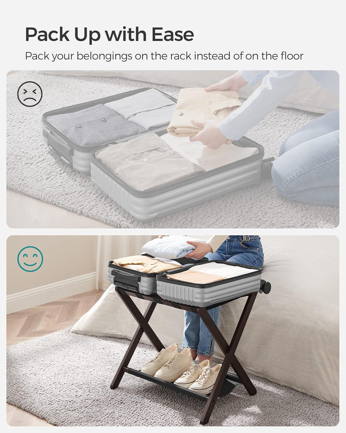 [Packing Made Easier] Make your guests feel at home with this convenient luggage rack. It elevates their suitcase to a comfortable height for packing and unpacking, saving you or your guests from bending down to the floor