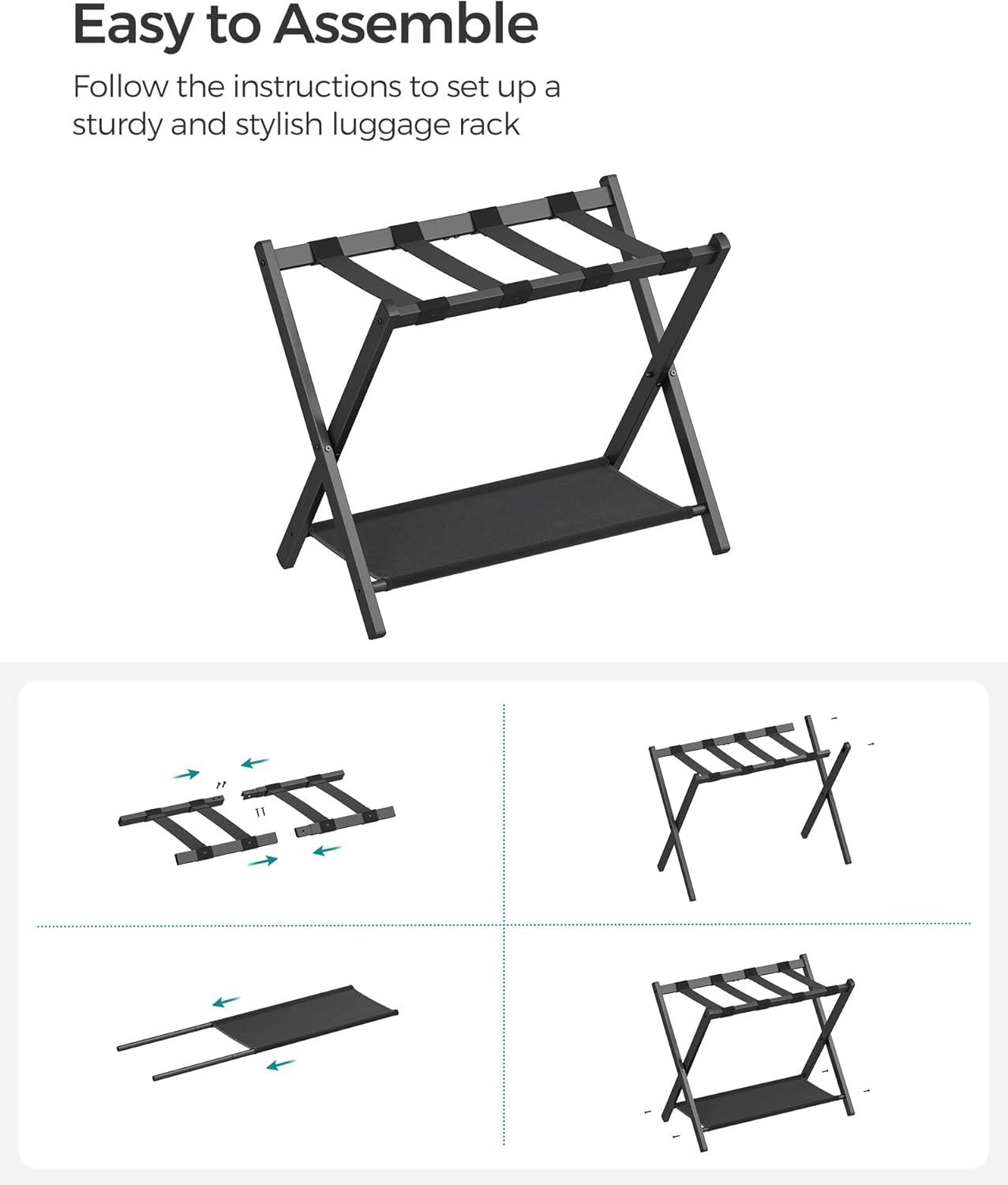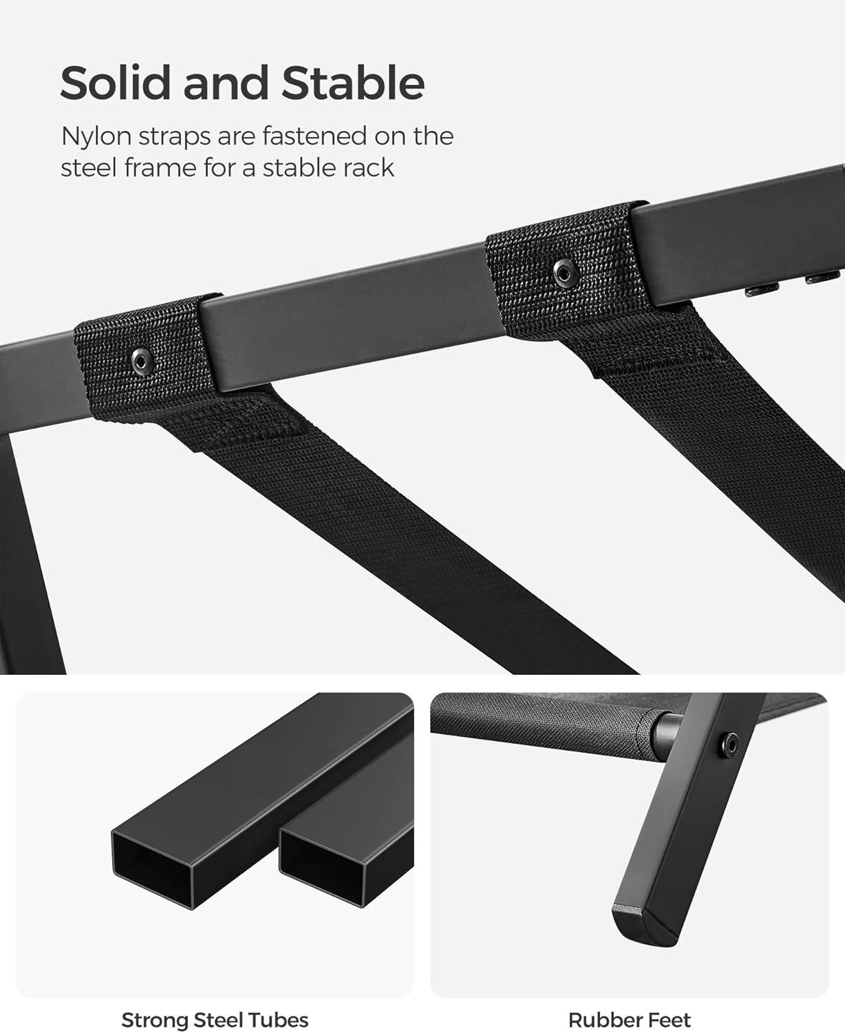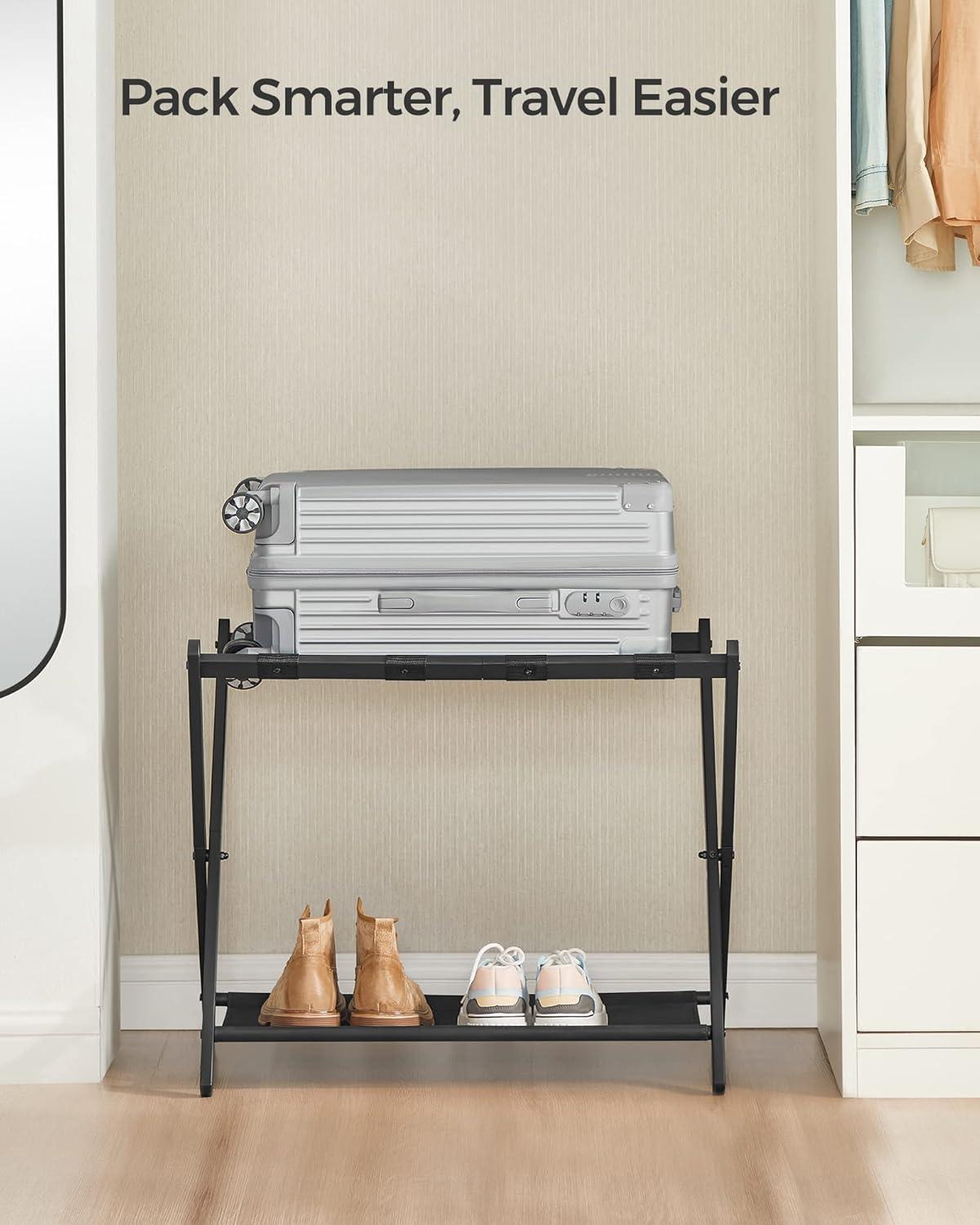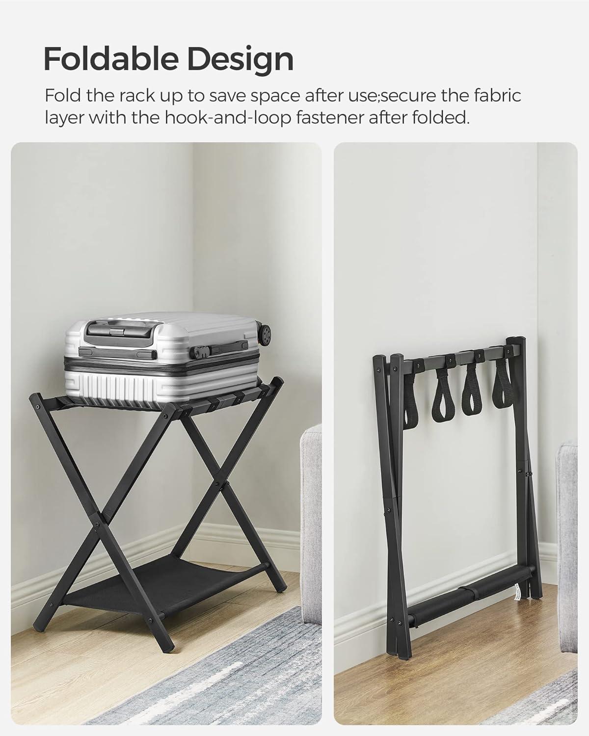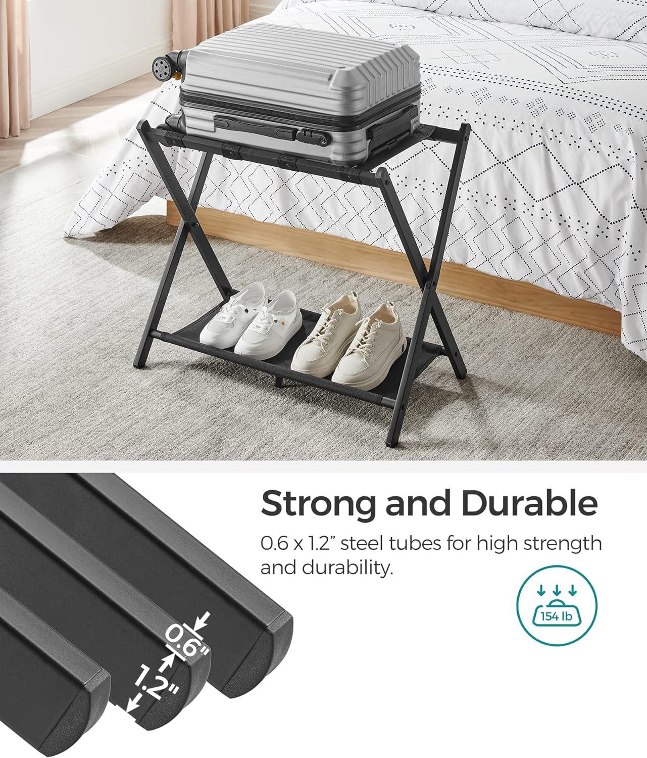 SONGMICS Luggage Racks for Guest Room, Set of 2, Suitcase Stand with Storage Shelf, Steel Frame, Foldable for Easy Storage, Hotel, Bedroom, Black URLR003B02(Black)