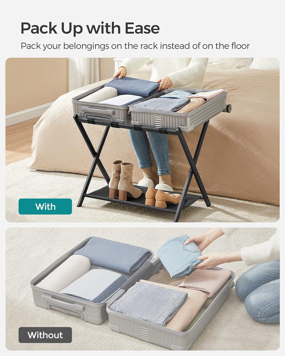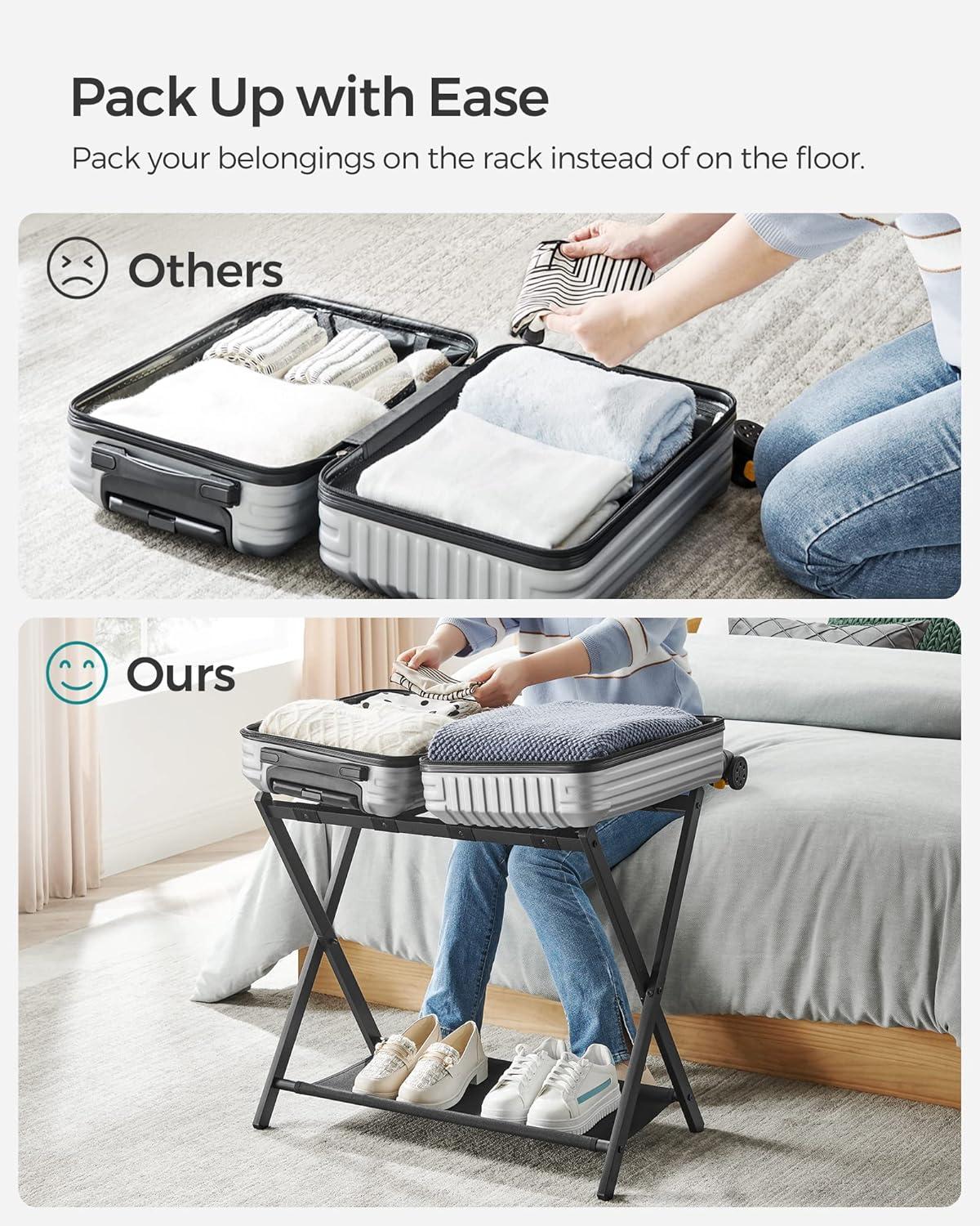 [Packing Made Easier] Make your guests feel at home with this set of 2 convenient luggage racks. It elevates their suitcase to a comfortable height for packing and unpacking, saving you or your guests from bending down to the floor