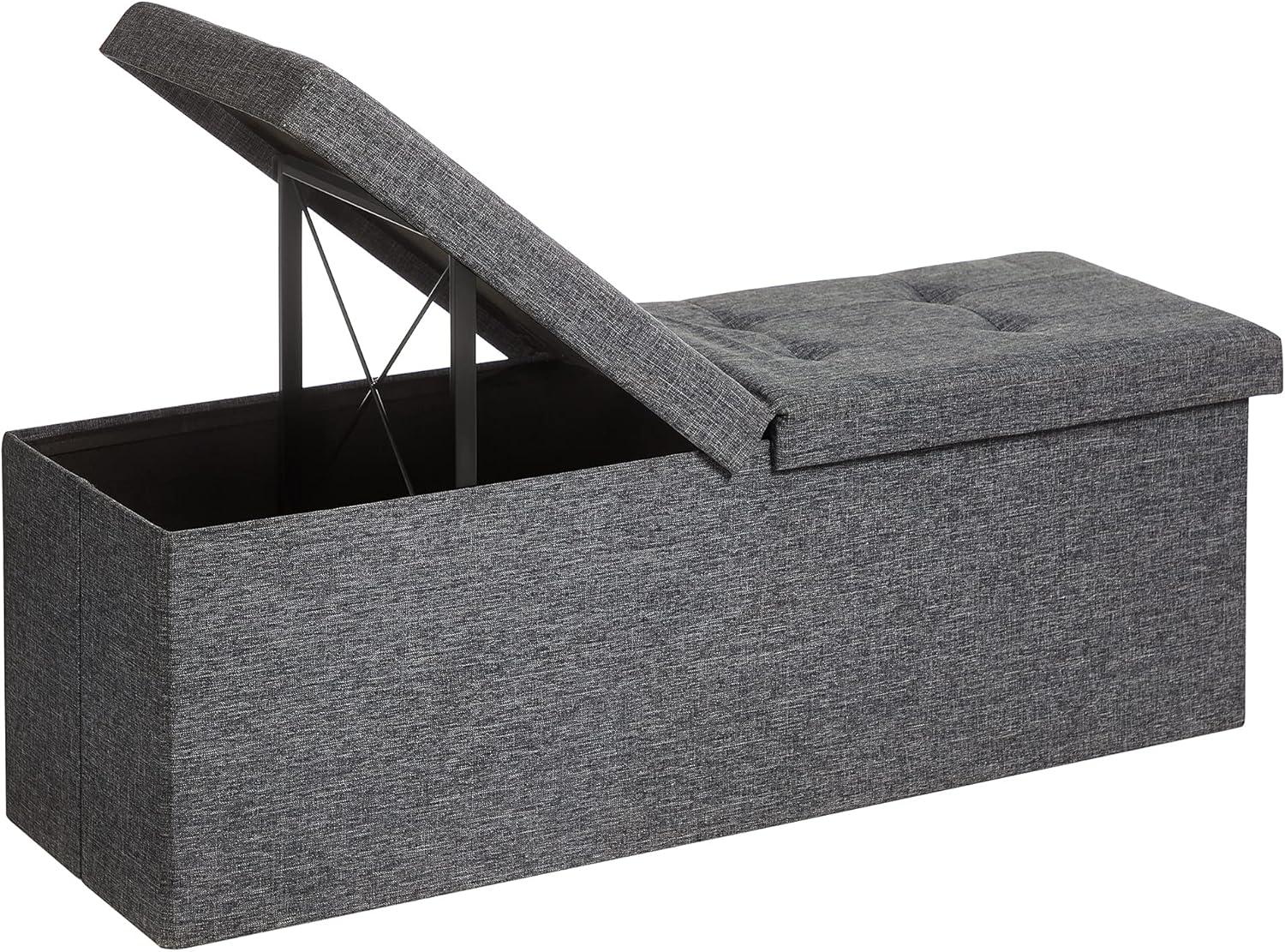 SONGMICS MAZIE Collection – 43 Inches Storage Ottoman, Foldable Storage Bench with Flipping Lid, 660 lb Load Capacity, for Entryway, Living Room, Bedroom, Dark Gray ULSF76GYZ(Slate Gray)