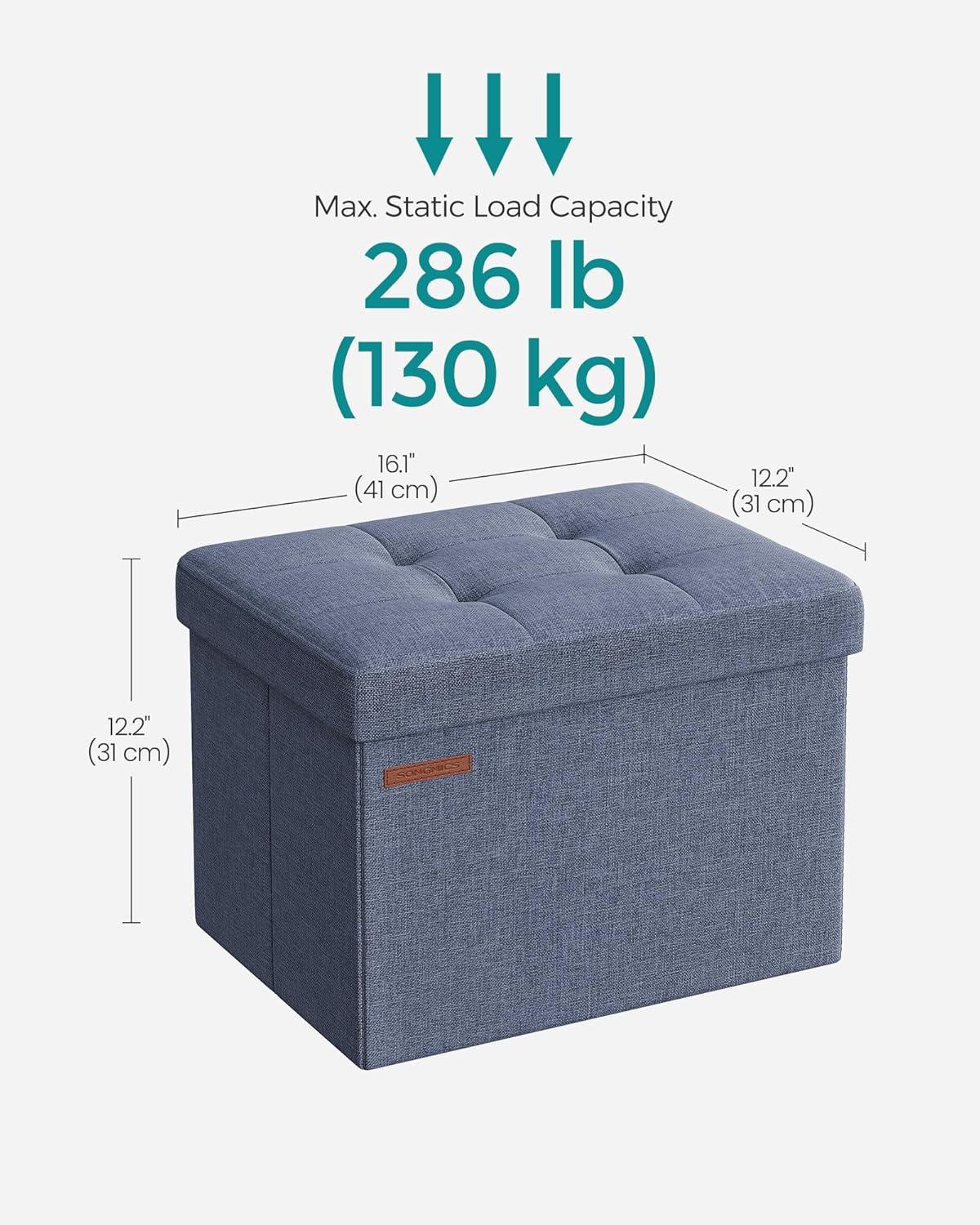 SONGMICS Mazie Collection - Small Folding Storage Ottoman, Foot Rest Stool, 12.2 x 16.1 x 12.2 Inches, 286 lb Load Capacity, for Living Room, Bedroom, Home Office, Dorm, Dark Gray ULSF102G01(Light Denim Blue)