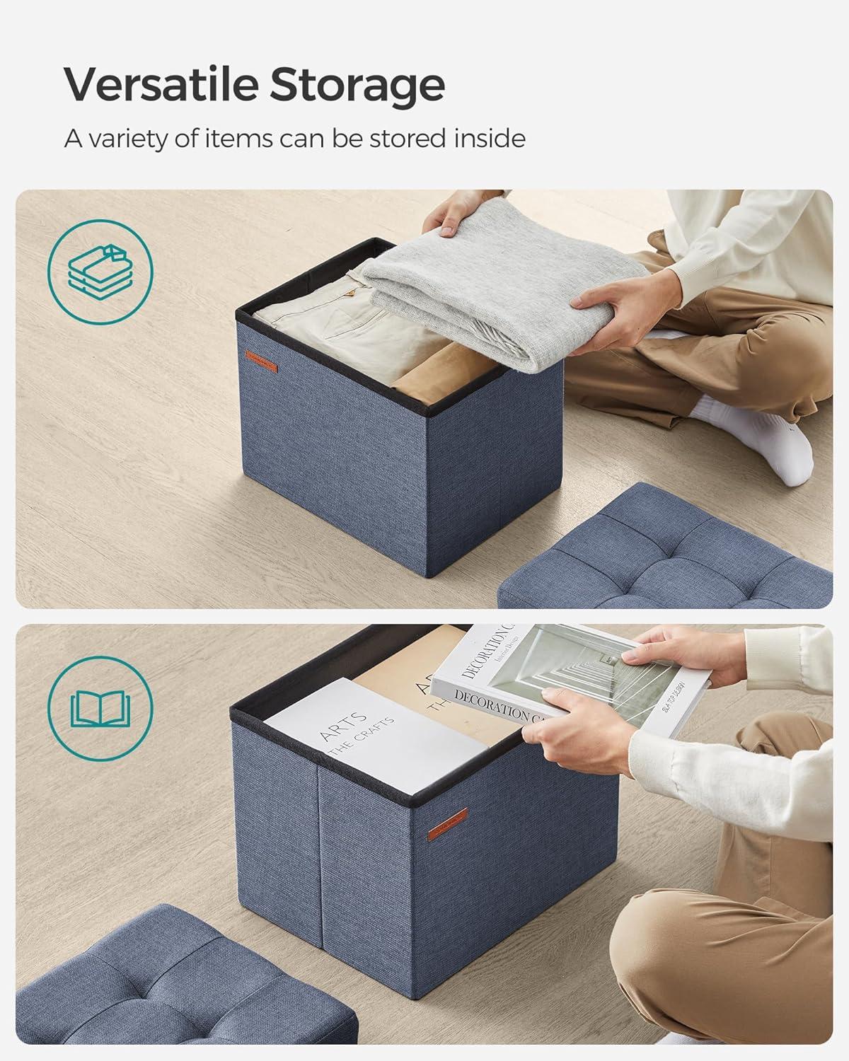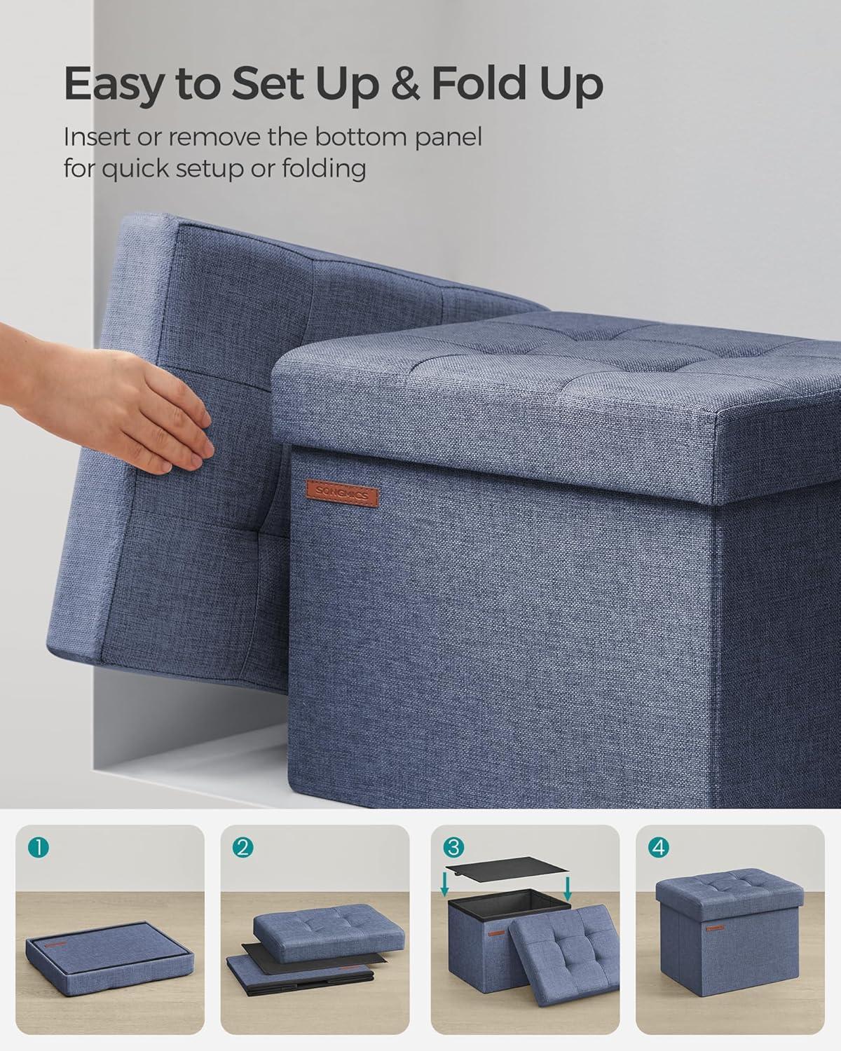imageSONGMICS Mazie Collection  Small Folding Storage Ottoman Foot Rest Stool 122 x 161 x 122 Inches 286 lb Load Capacity for Living Room Bedroom Home Office Dorm Dark Gray ULSF102G01Light Denim Blue