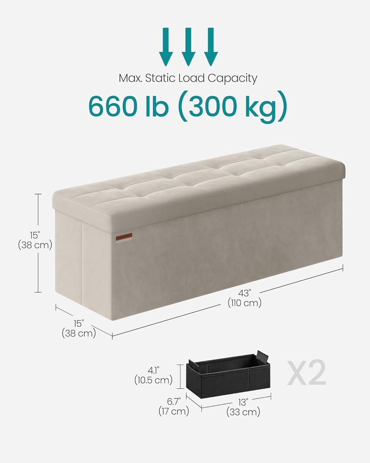 Sturdy and Durable: Built with premium MDF panels and reinforced with metal corner guards on the lid, this ottoman is strong enough to support up to 660 lb (300 kg), making it a reliable seating or storage solution that will stand the test of time