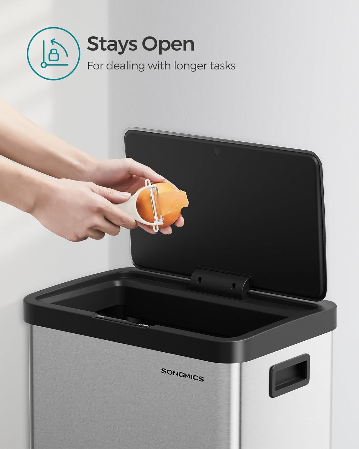 [Stay-Open Lid] For added convenience during food prep or large clean-ups, simply touch the “OPEN” button to keep the lid open for 15 minutes. If you wish to close it sooner, just touch “CLOSE”