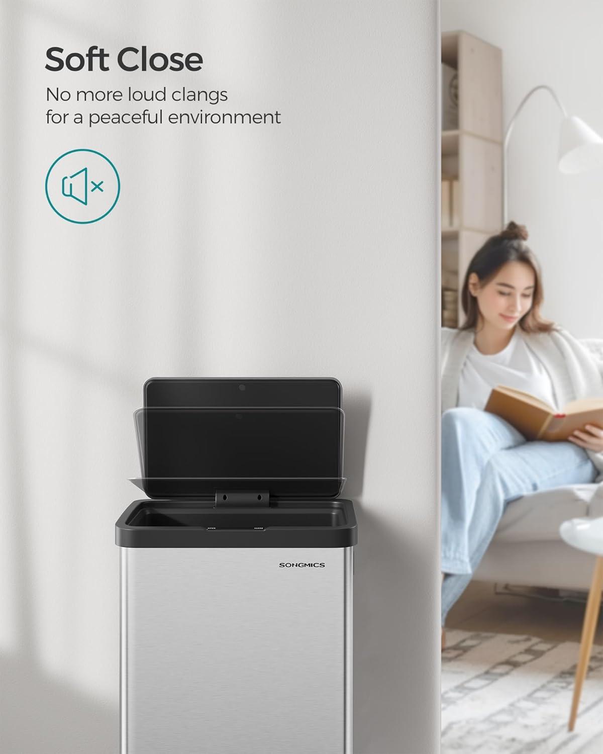 [Soft Close] Say goodbye to loud, noisy clangs with this motion sensor trash can's silent and slow closing lid, ensuring a peaceful environment
