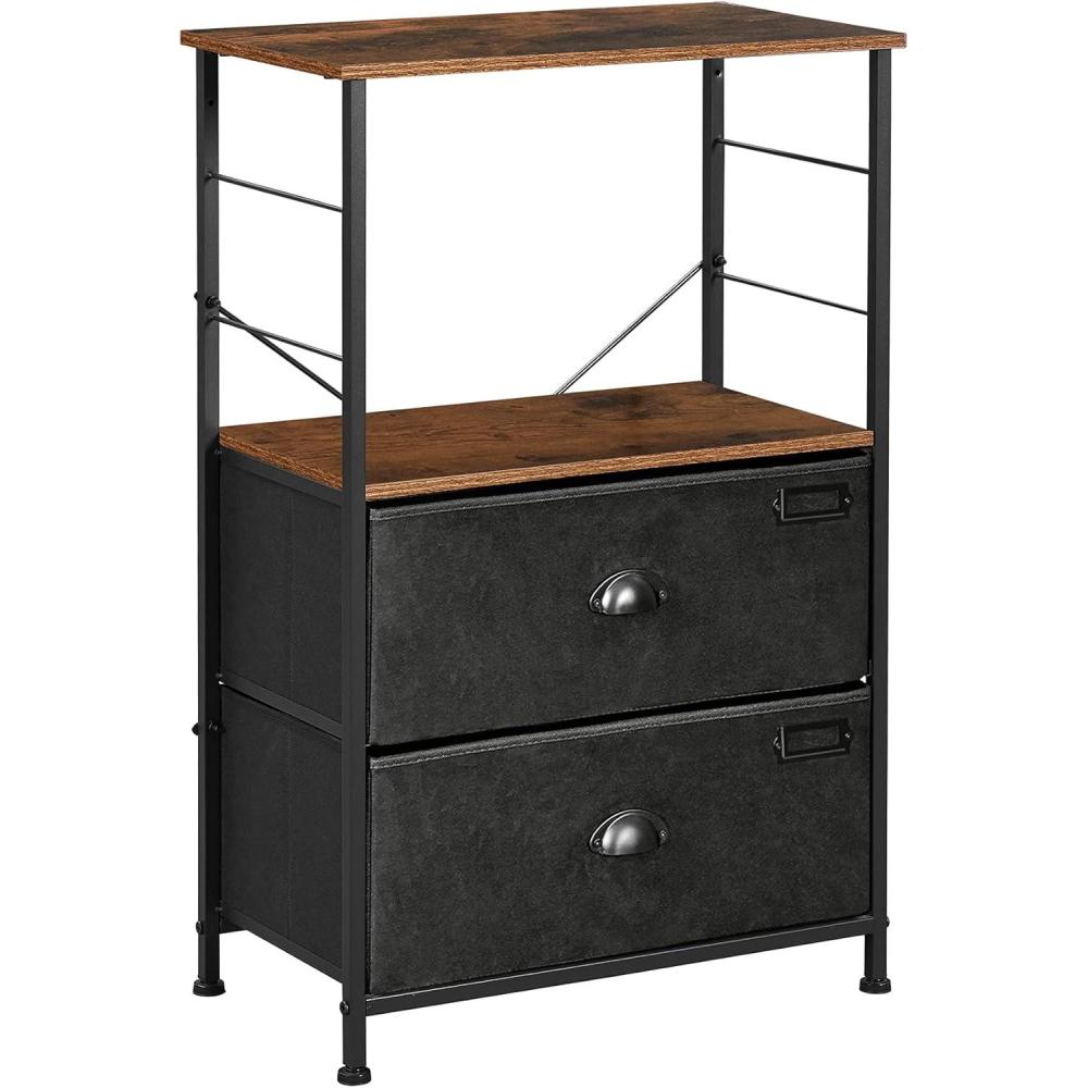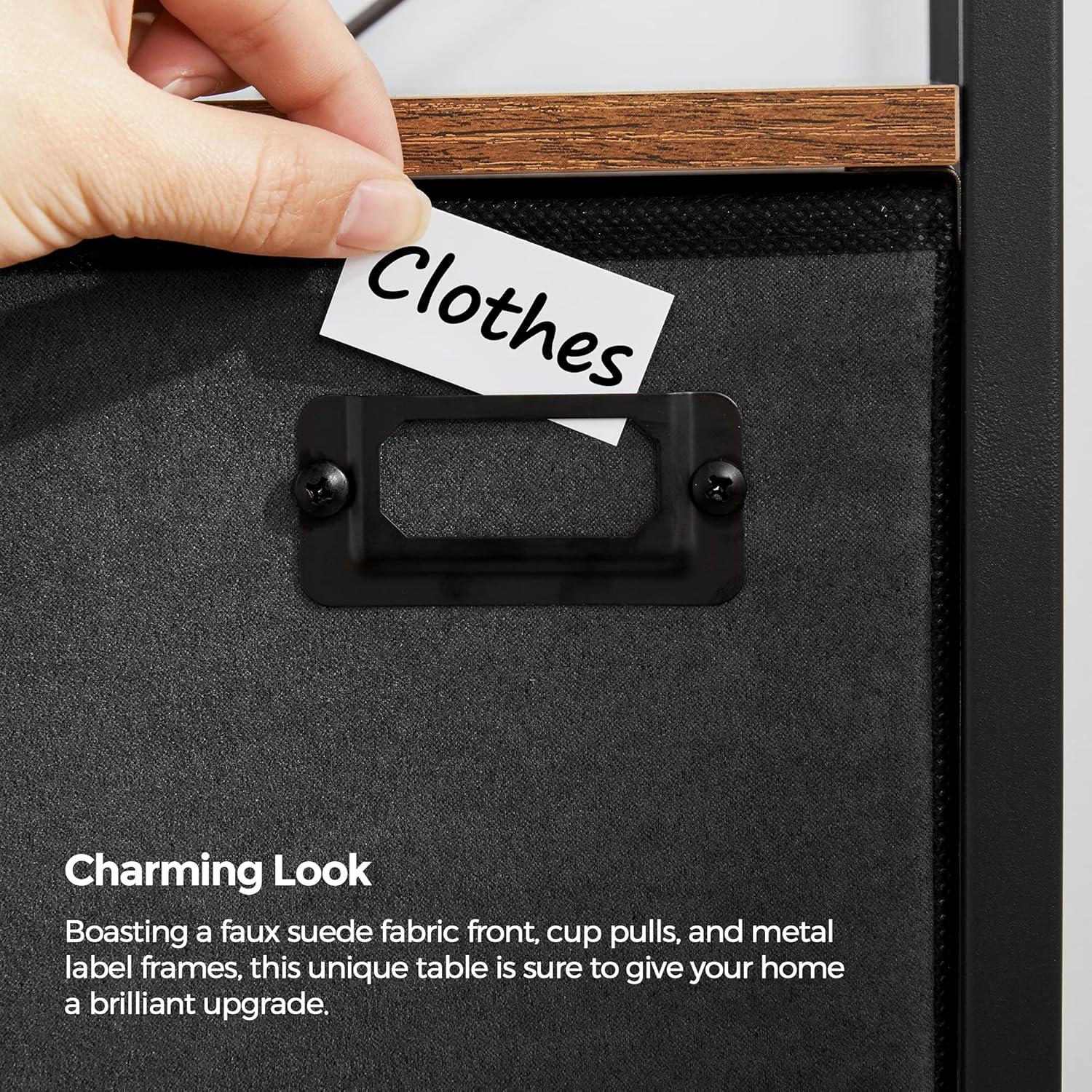 Lazy Is Allowed Tonight: The lamp on the tabletop is on, your favorite novels lying on the open shelf, and your cozy pajamas and eye masks in the drawers; with everything in its place, this nightstand is ready for a cozy, lazy night—how about you?.Assembly Required.Material:MDF, Metal, Faux Suede Fabric Front, Non-Woven Fabric, Oxford Fabric Bottom.Item Dimensions:22″ L x 12.2″ W x 33.9″ H