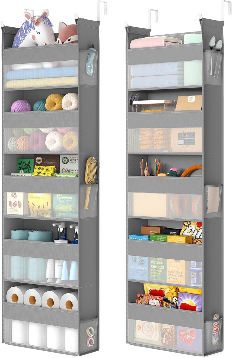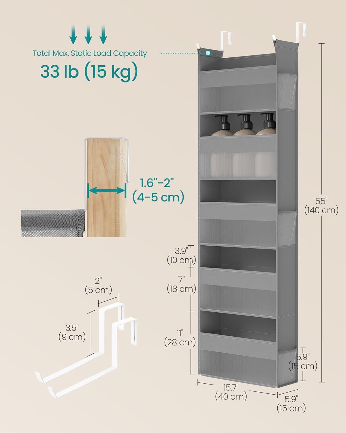 Stable Door Fit: With specially designed metal hooks and internal support plates, this door organizer remains stable and resists wobbling. It fits over smooth doors 1.6″-2″ thick and is not suitable for irregularly shaped or thinner doors