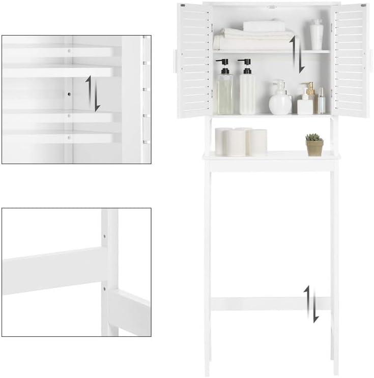 [Organize Your Bathroom] Need more storage space in your bathroom? Look no further. This tall 3-tier over-the-toilet cabinet with 2 doors keeps essentials organized without occupying excessive space. Say goodbye to bending down for items under the sink!