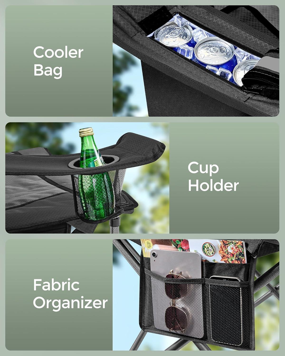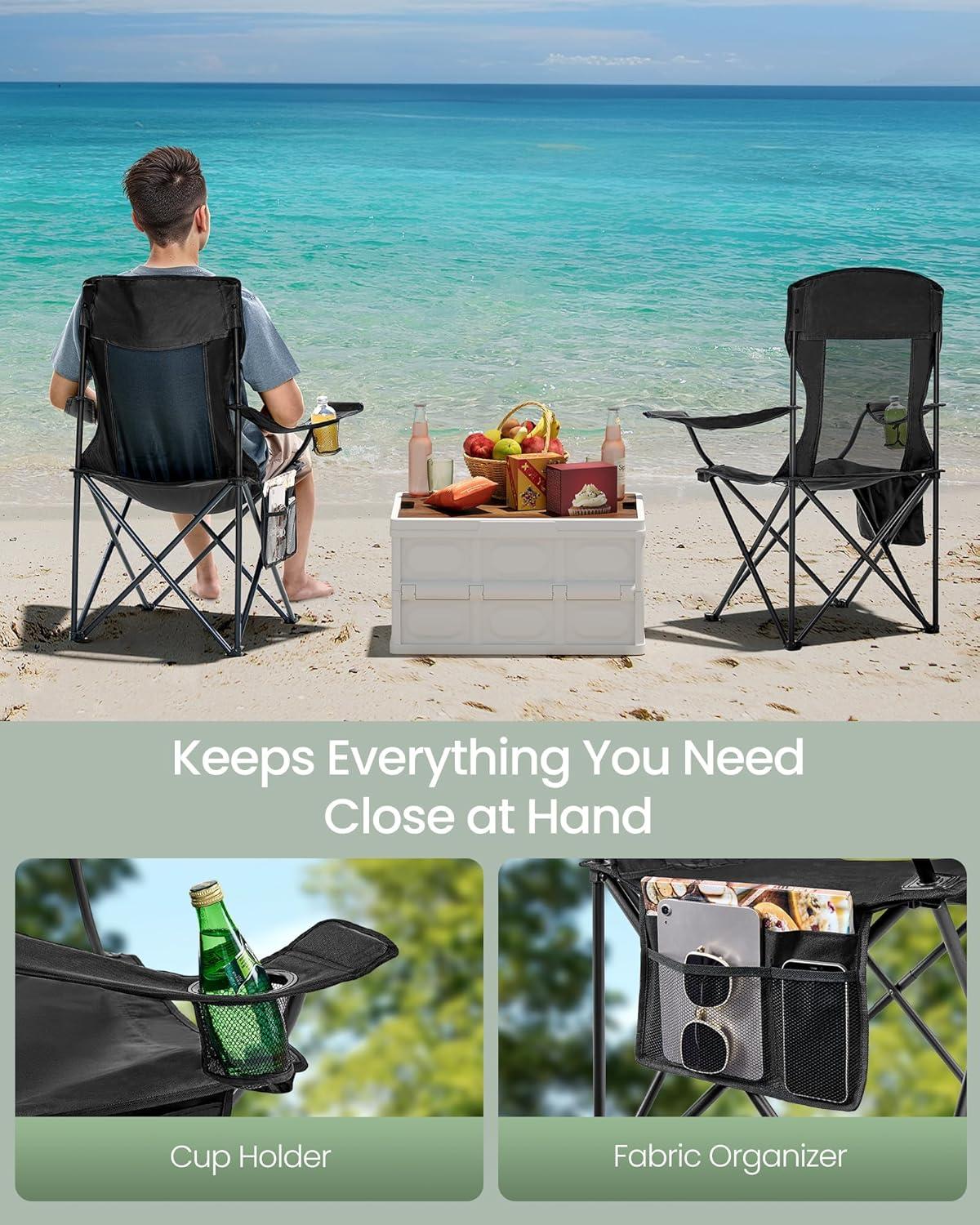 【FULL SUPPORT】With a 39.2″ high backrest, this camping chair offers ideal shoulder and back support. In addition, the lumbar support is height adjustable as required, snuggly conforming to your body for ultimate comfort during use