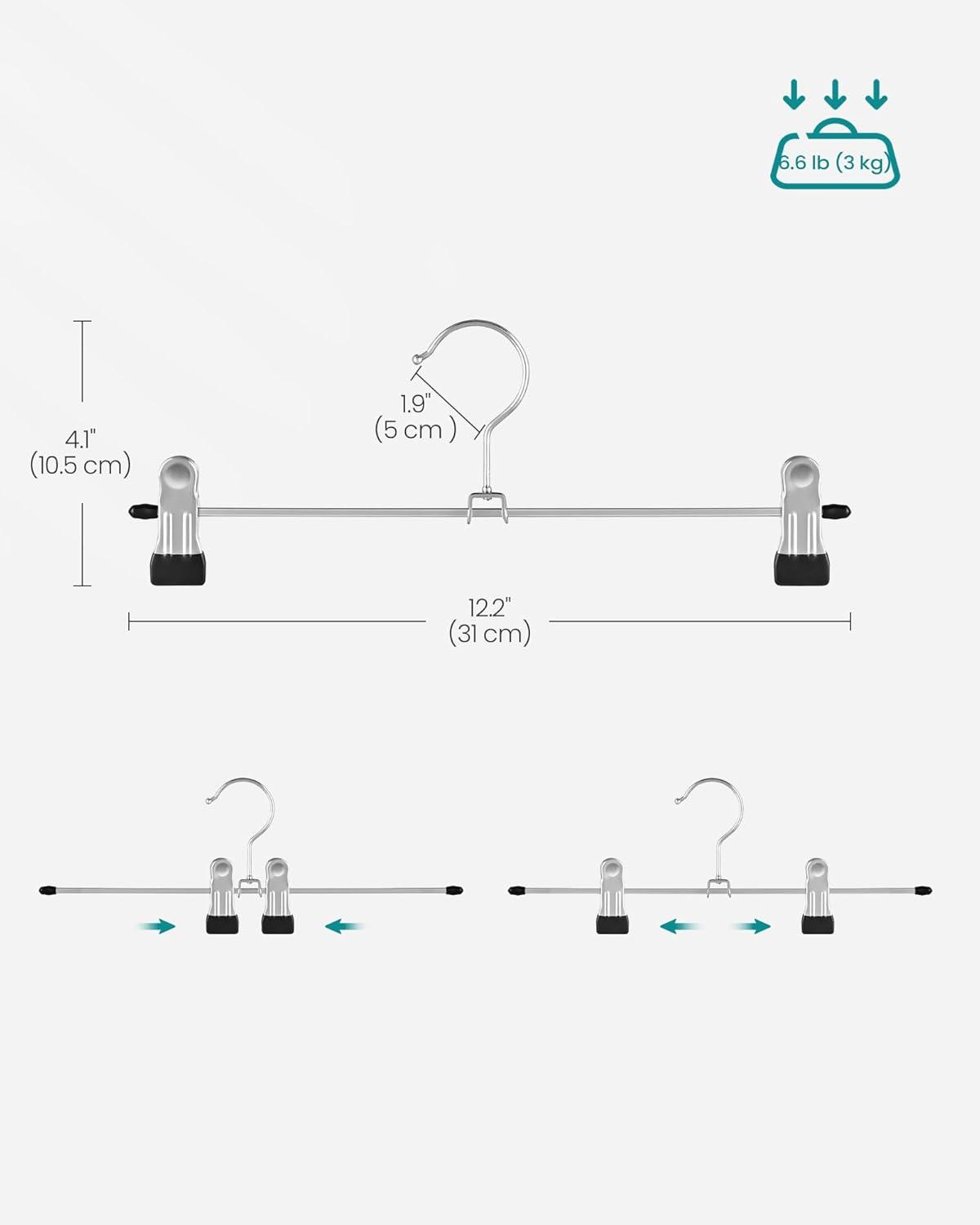 SONGMICS Pants Hangers, Set of 3, 5 Tiers Non-Slip Skirt Hangers, Space Saving Pants Organizers, for Closet, Silver and Black UCRI041BK(20 Packs with Clips)