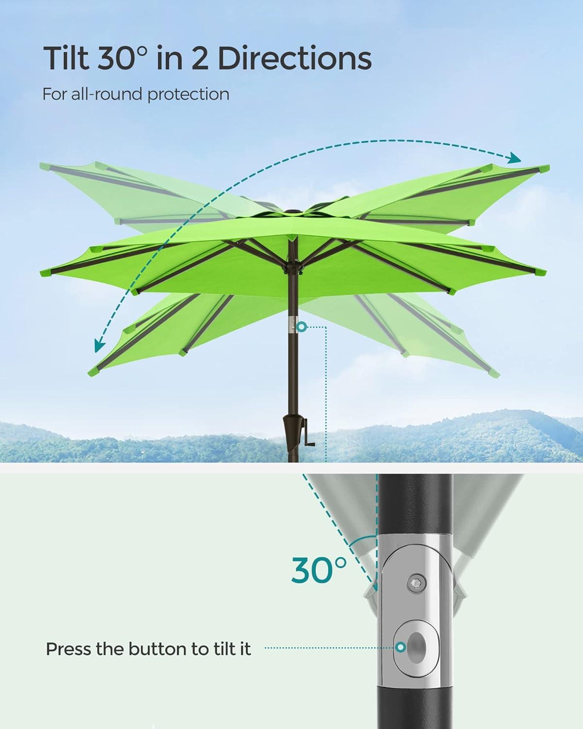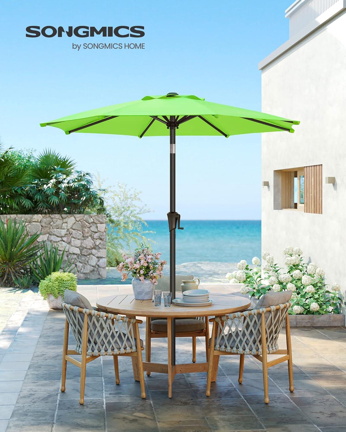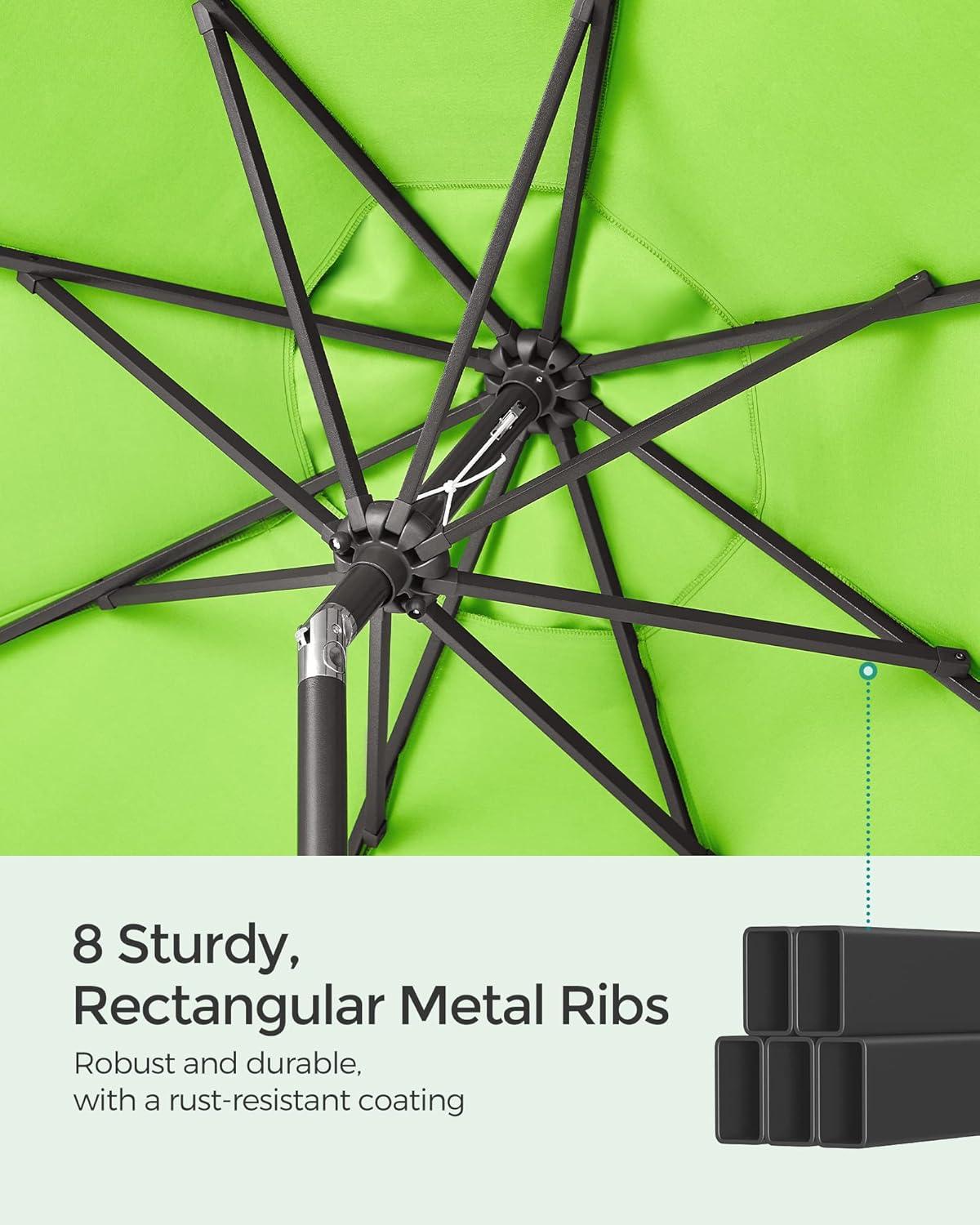 SONGMICS Patio Umbrella, 9 ft Outdoor Table Umbrella, Deck Umbrella, with 8 Ribs, UPF 50+, 30° Dual-Tilt System, Base Not Included, for Patio, Garden, Pool, White UGPU09BEV1(Bright Green)