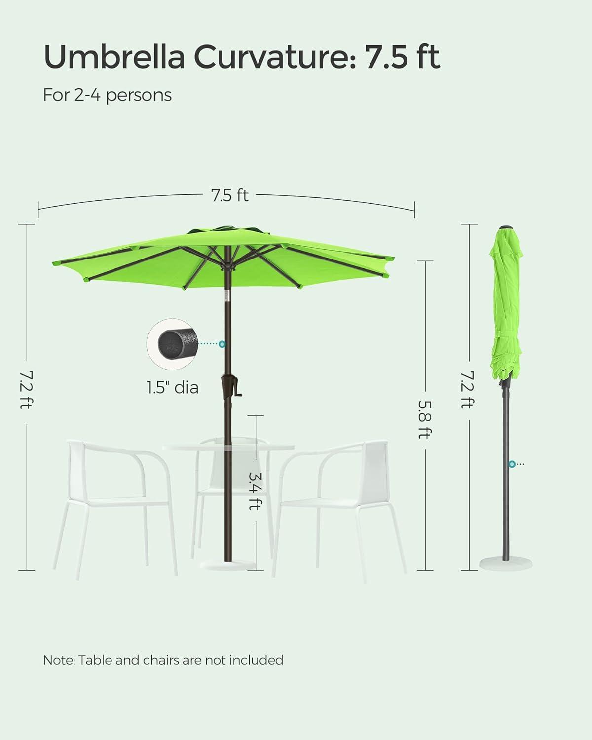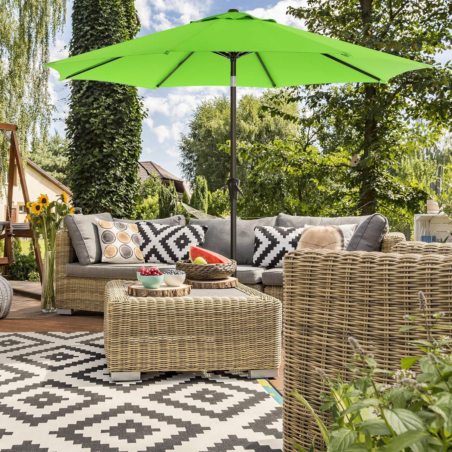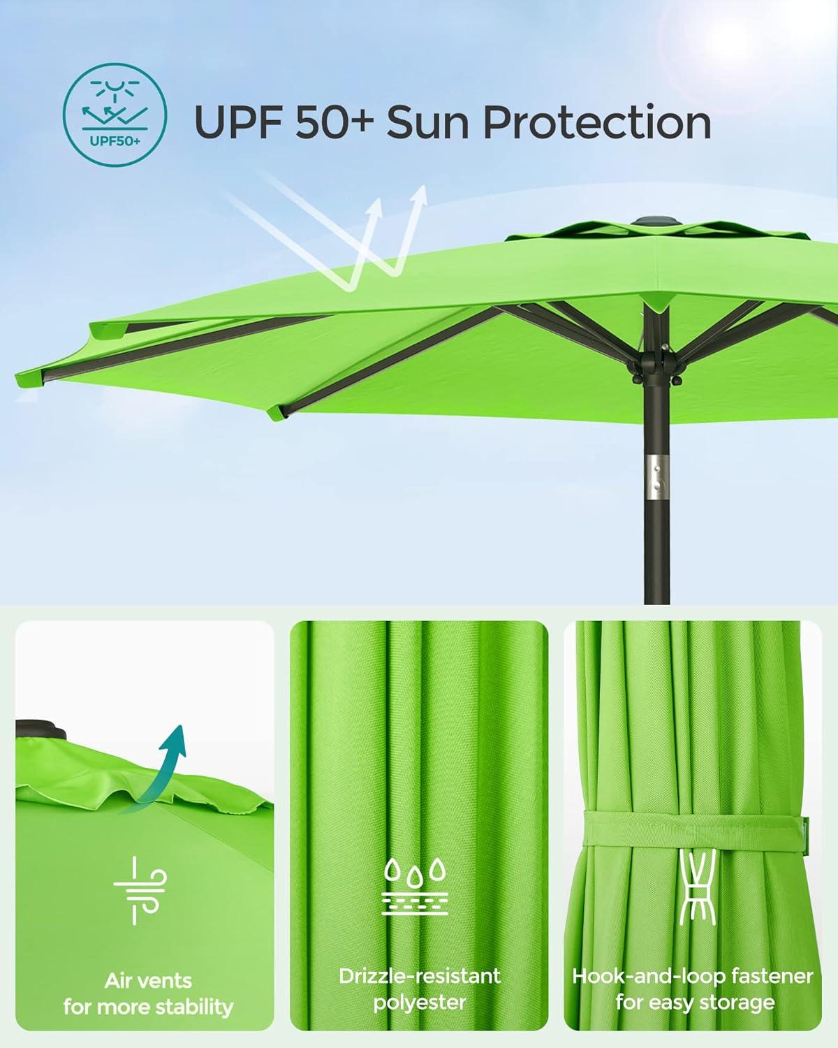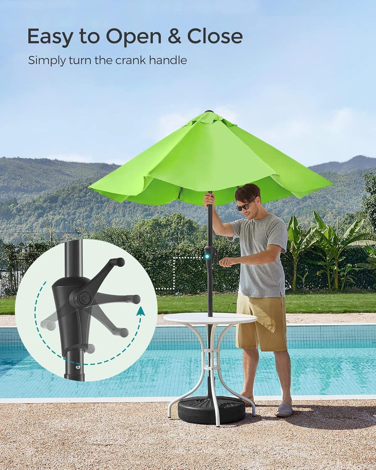 SONGMICS Patio Umbrella, 9 ft Outdoor Table Umbrella, Deck Umbrella, with 8 Ribs, UPF 50+, 30° Dual-Tilt System, Base Not Included, for Patio, Garden, Pool, White UGPU09BEV1(Bright Green)