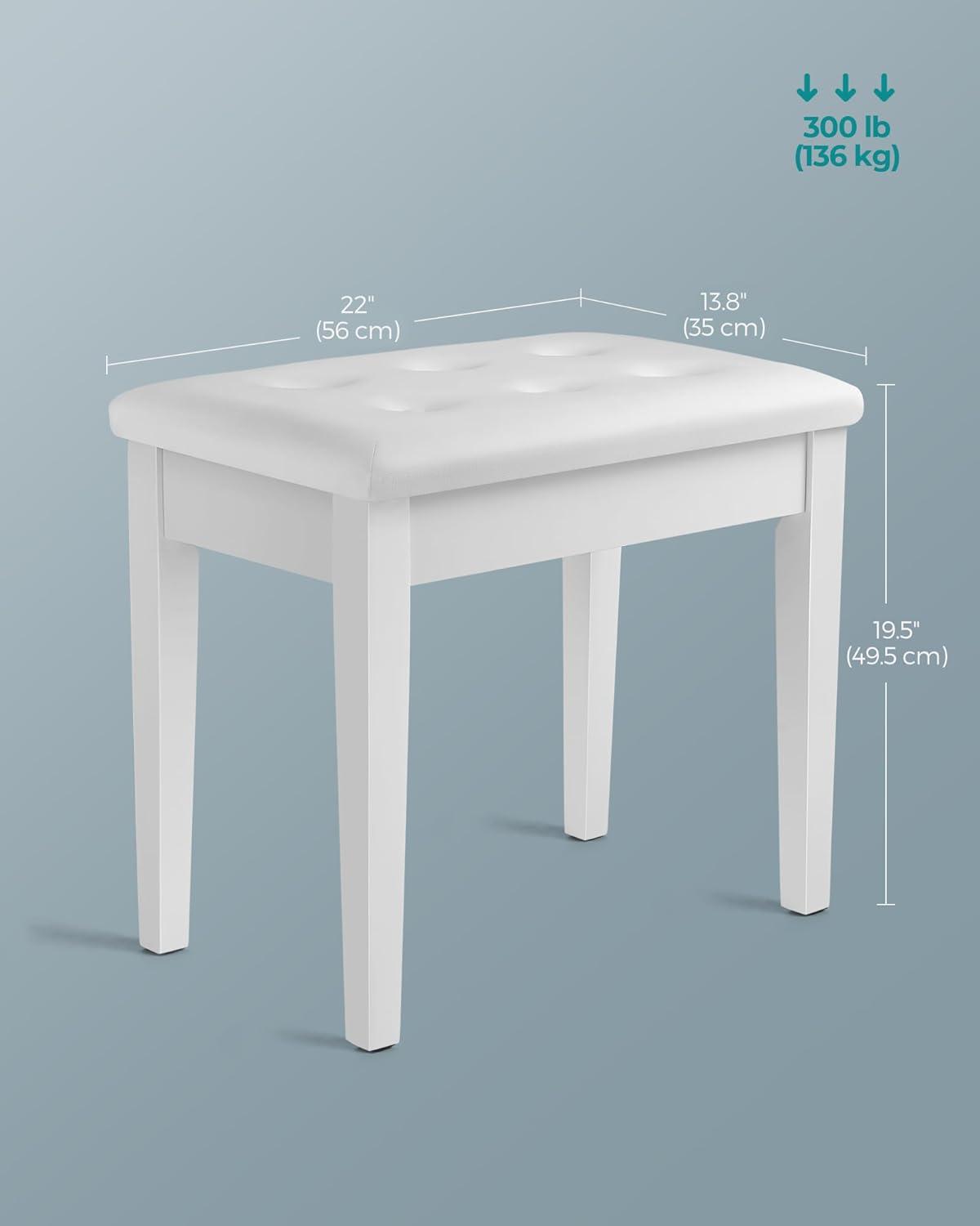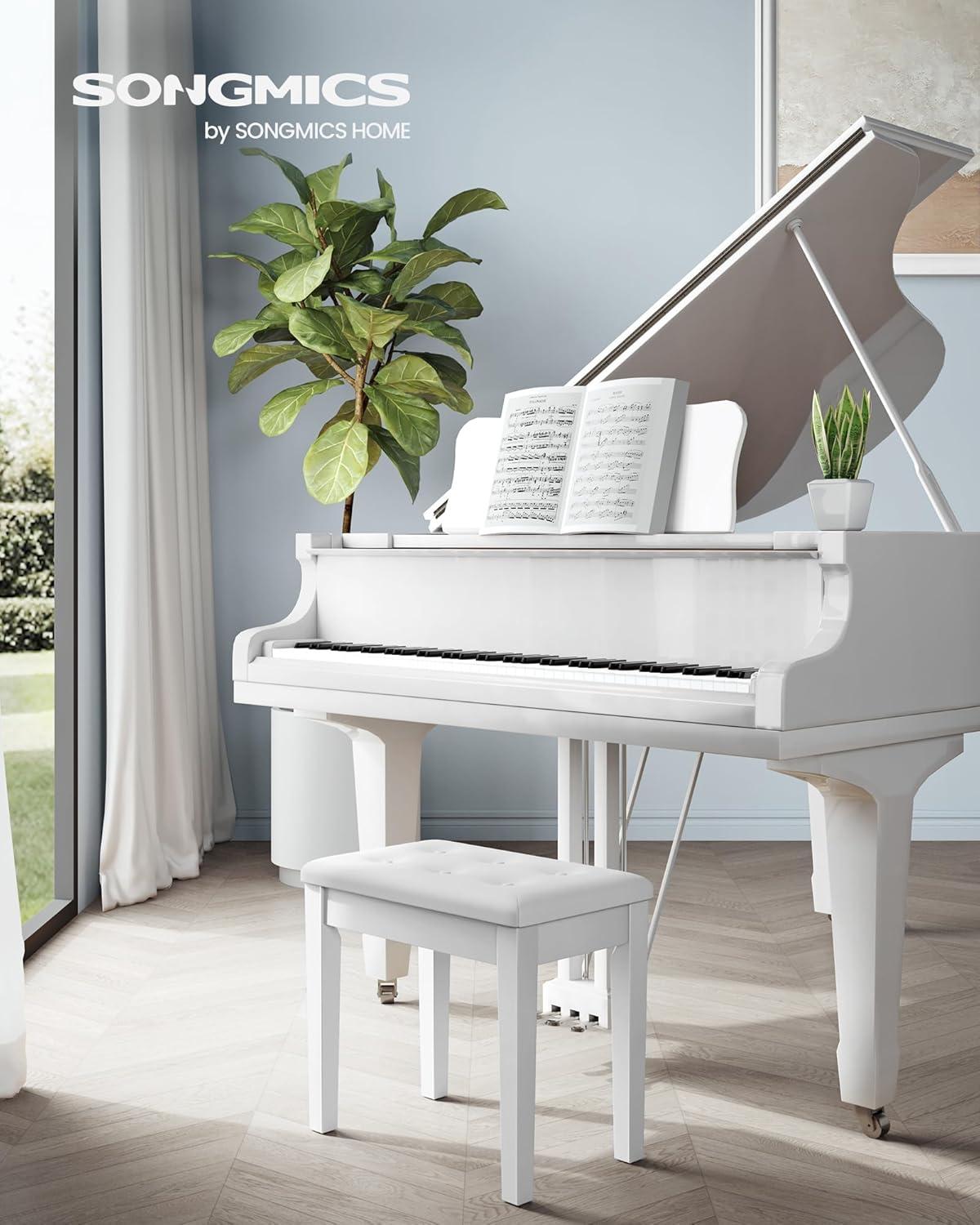 SONGMICS Piano Bench with Padded Cushion and Storage Compartment for Music Books, Vanity Stool, Tufted Wooden Piano Seat, 13.8 x 22 x 19.5 Inches, White ULPB55WT(White)