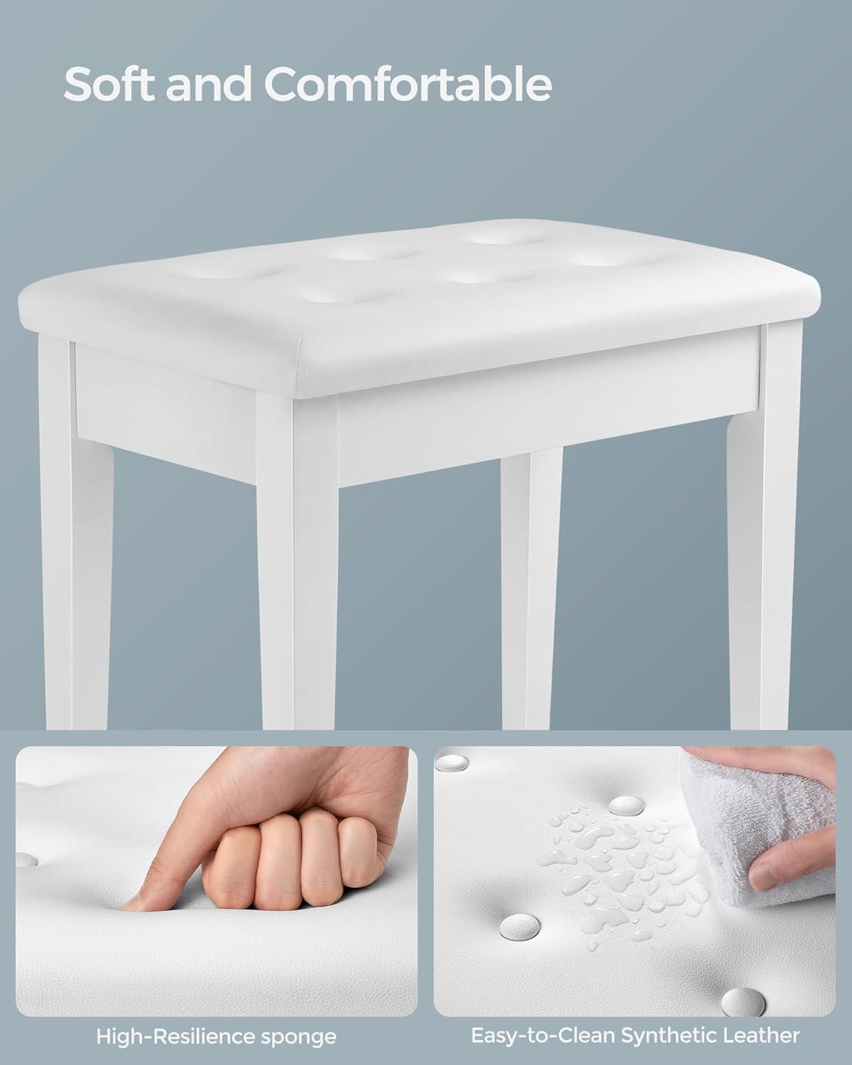 Be the first to review “SONGMICS Piano Bench with Padded Cushion and Storage Compartment for Music Books, Vanity Stool, Tufted Wooden Piano Seat, 13.8 x 22 x 19.5 Inches, White ULPB55WT(White)”