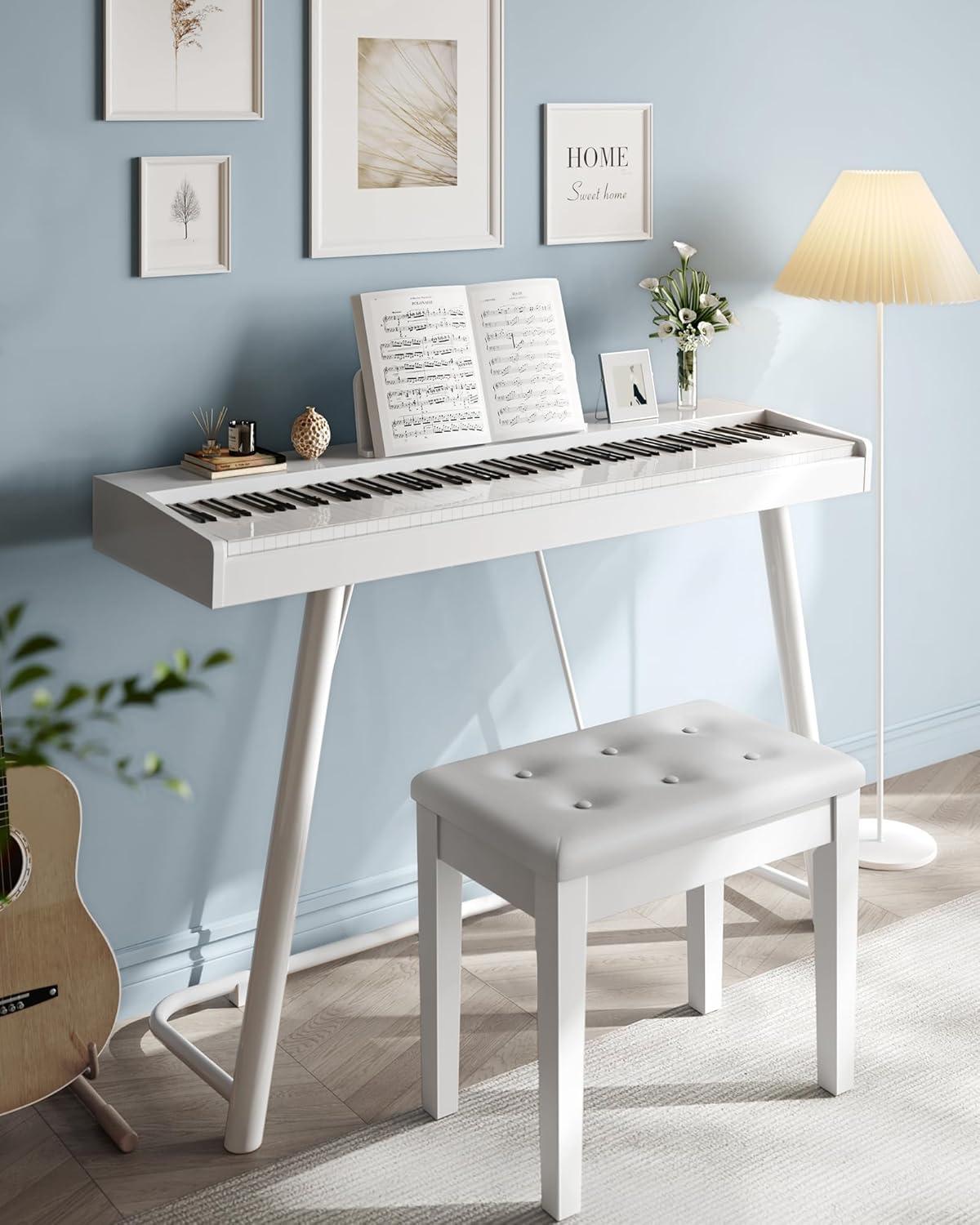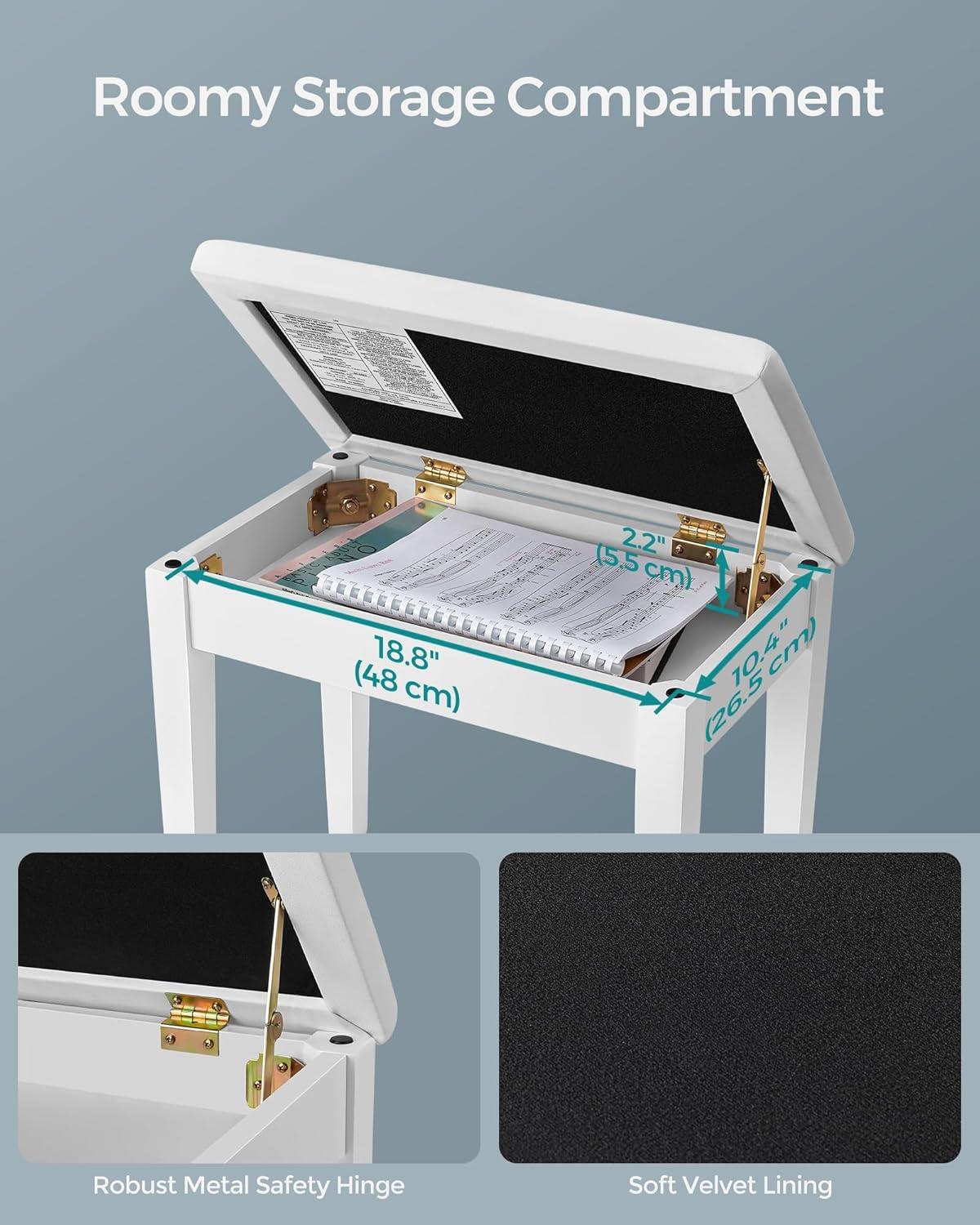 [Storage Compartment] The built-in compartment under the seat provides a convenient hidden storage space for your sheet music and books; The flip top is easy to open with a quality hinge for stable support