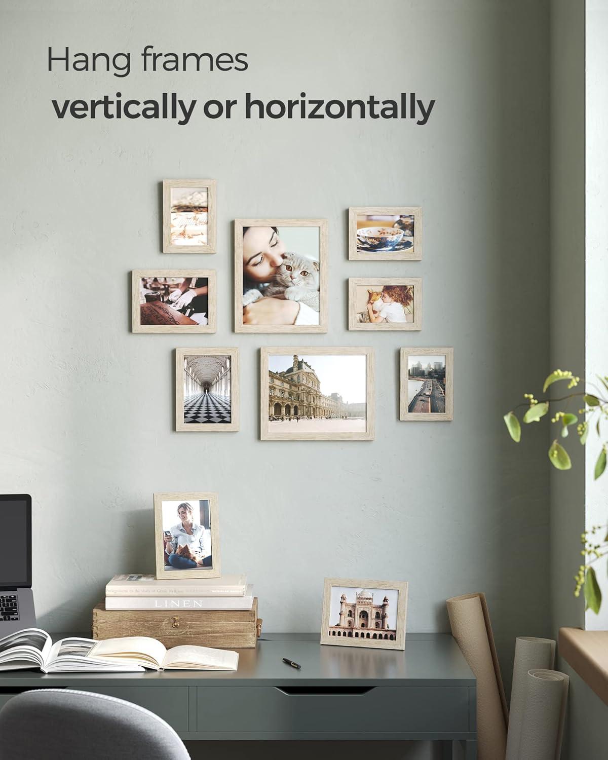 [Made with Care] This MDF gallery wall photo frame set lasts longer and adds a touch of elegance that plastic frames just don’t offer. The clear glass front with sanded edges not only keeps dust away, but also prevents scratches when changing out photos