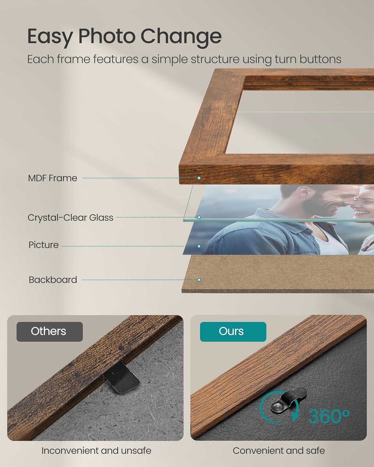 [Change Pictures with Ease] With durable turn buttons on the back of each picture frame, you’ll be able to easily change your pictures every time you want to revisit your favorite family memories