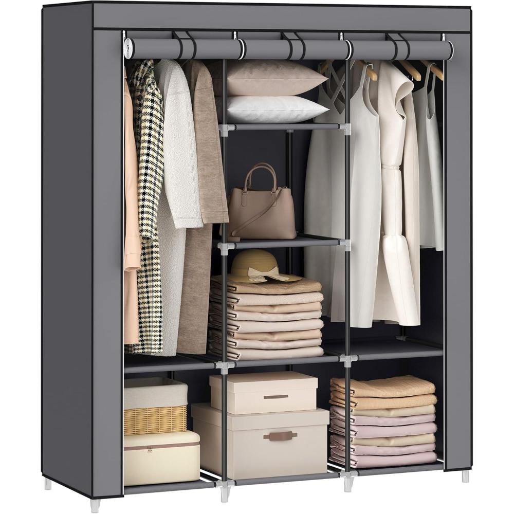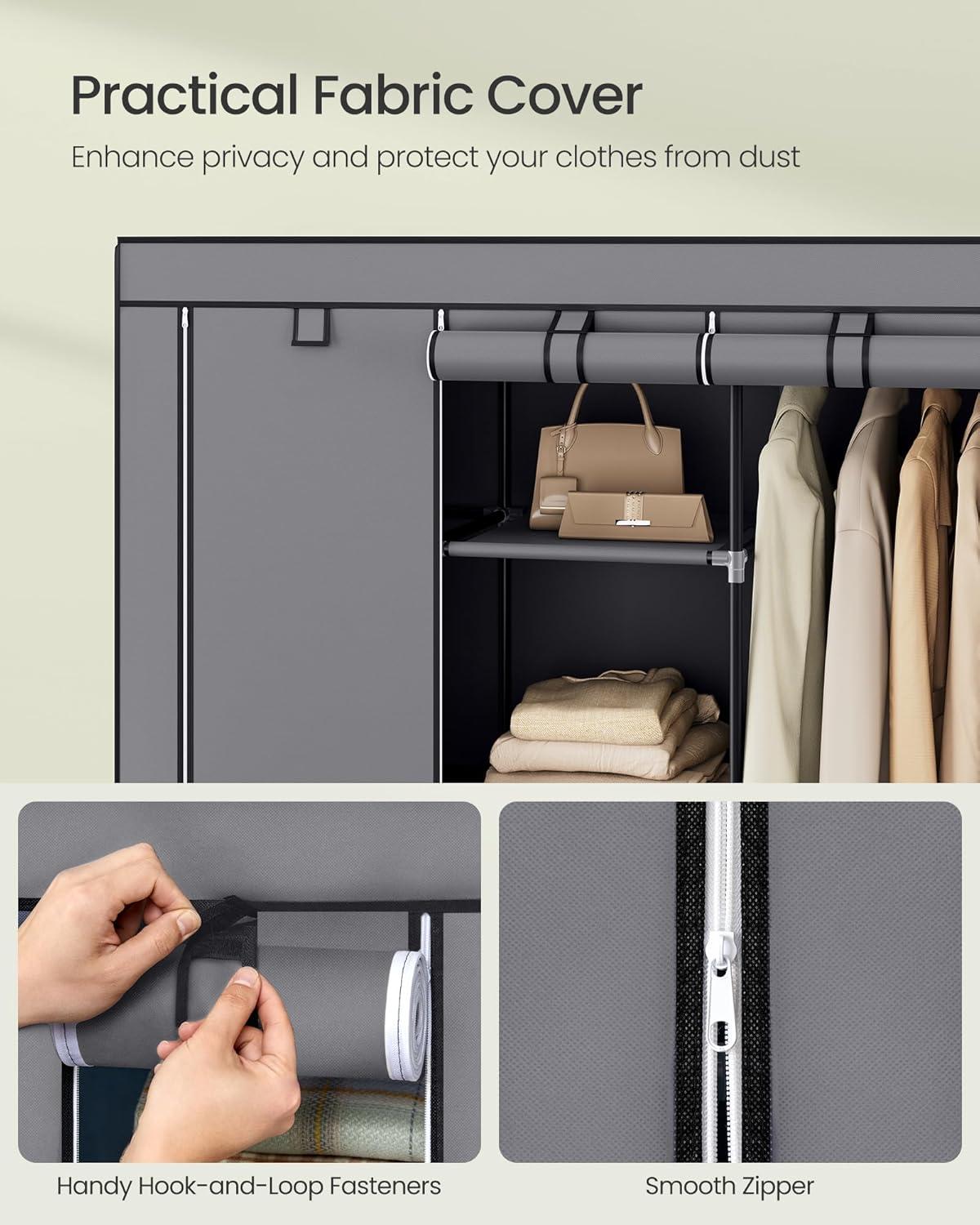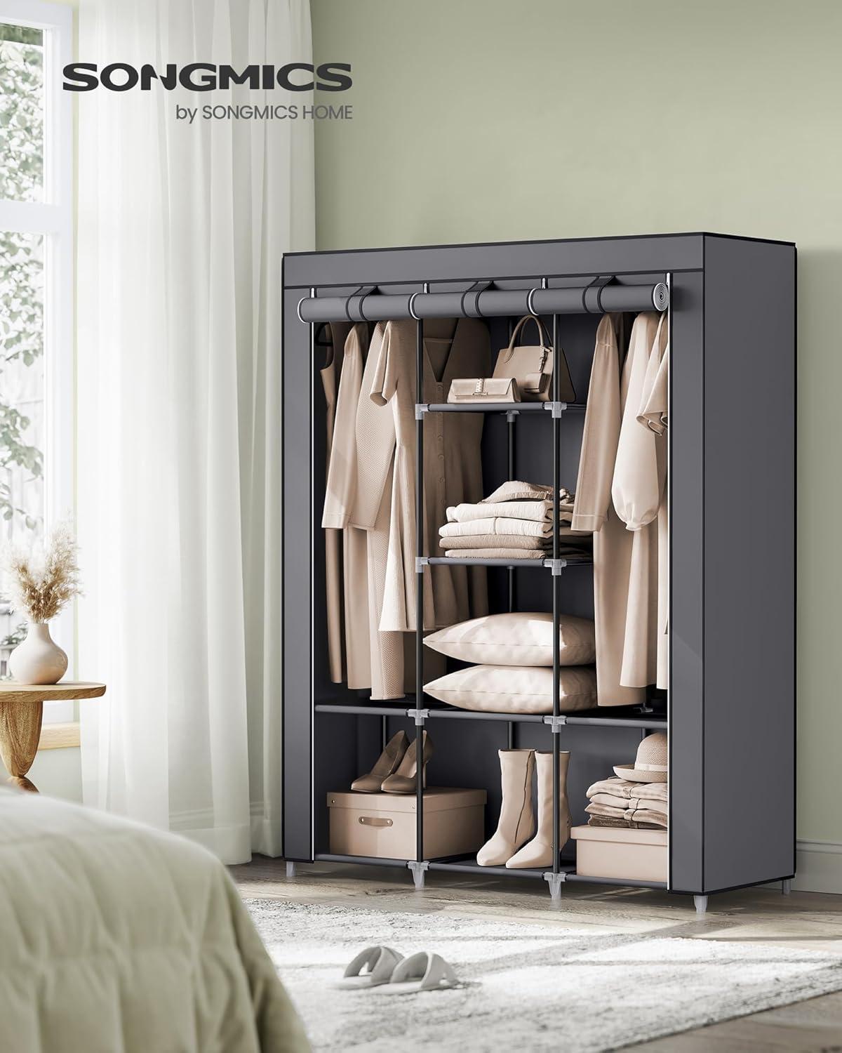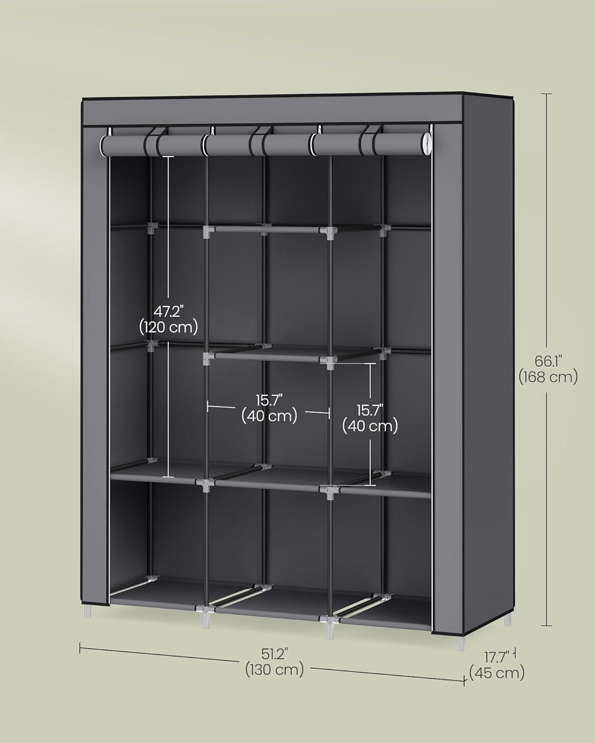SONGMICS Portable Closet, 51.2 Inch Large Capacity Wardrobe Closet Organizer with Fabric Cover, Hanging Rods and Shelves, 51.2 x 17.7 x 66.1 Inches, for Bedroom, Living Room, Dove Grey URYG096G01(Grey)