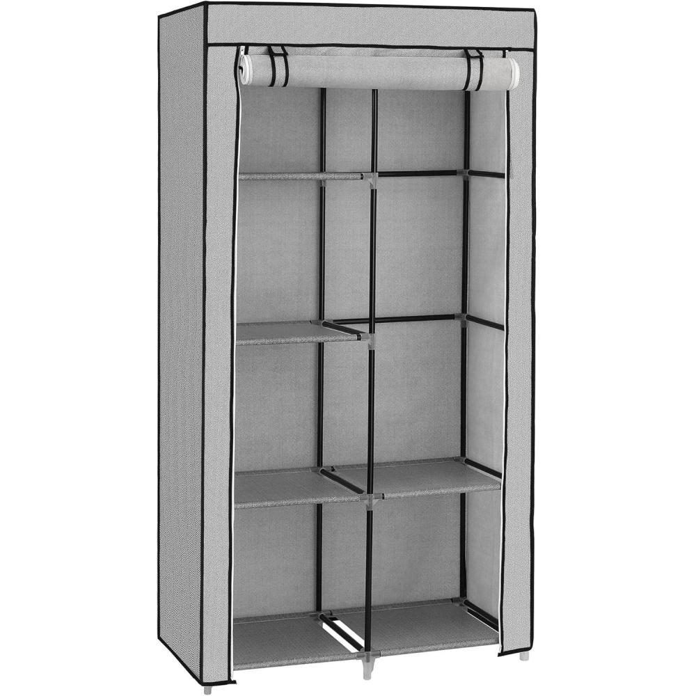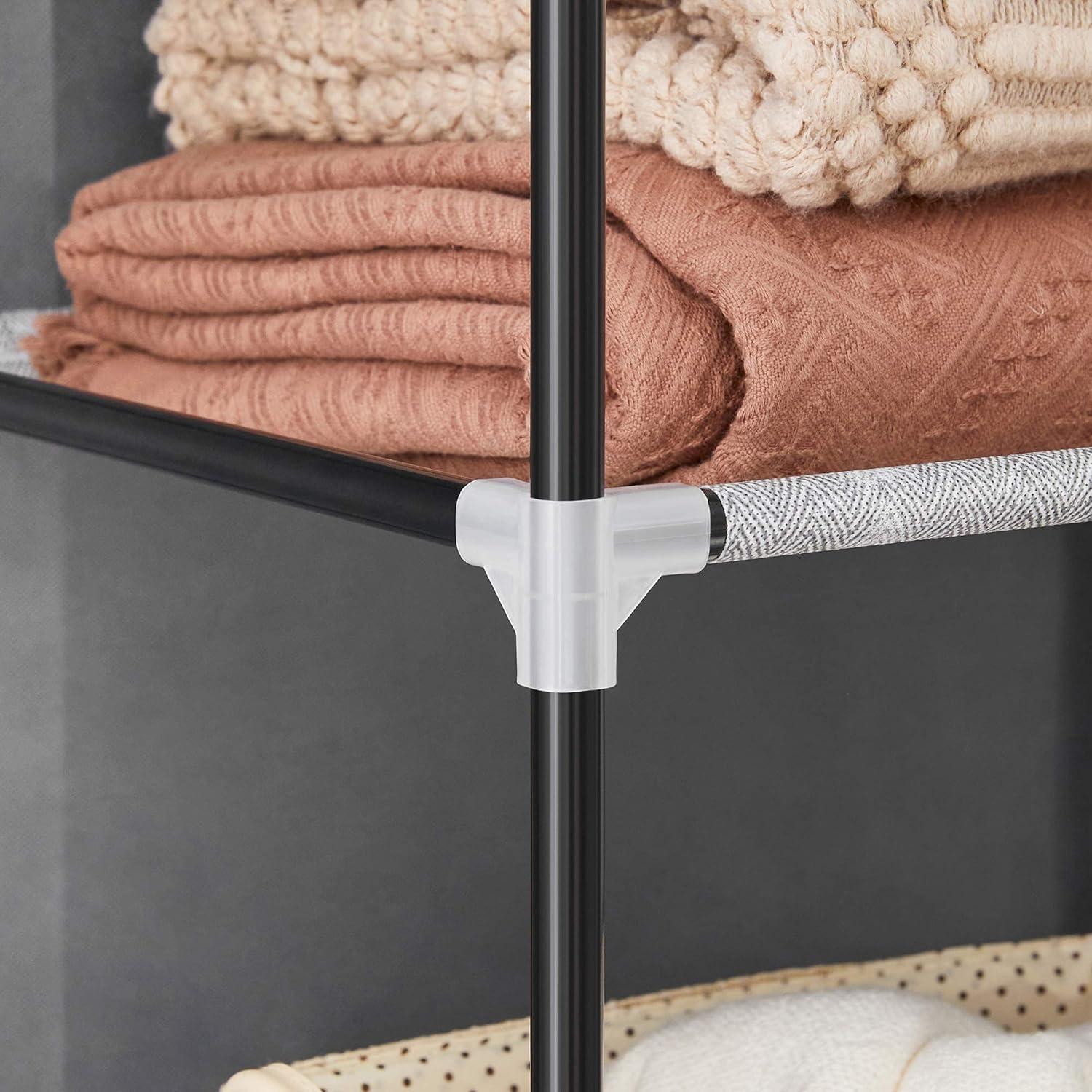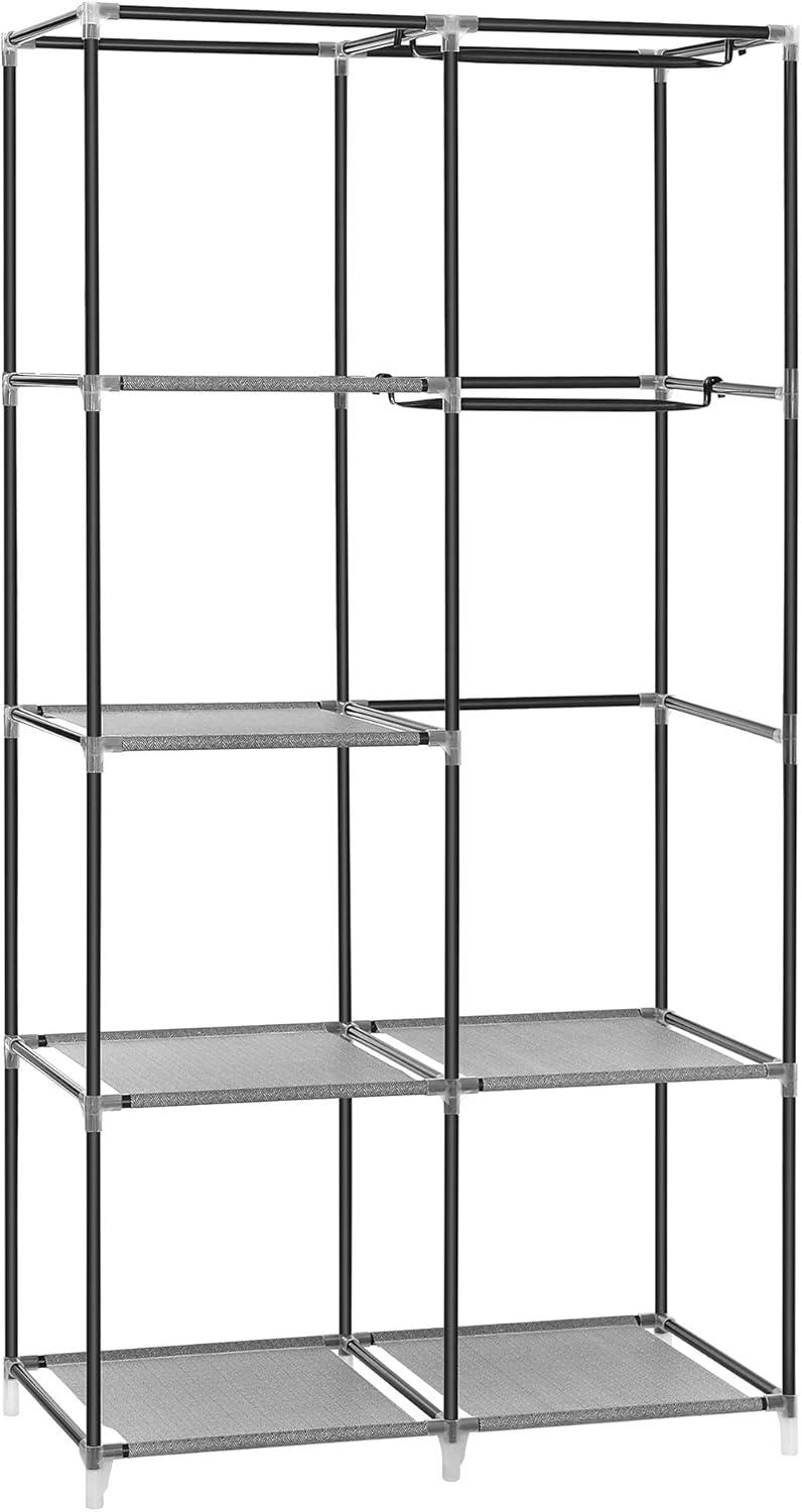 SONGMICS Portable Closet, Clothes Storage Organizer with 6 Shelves, 1 Clothes Hanging Rail, Non-Woven Fabric Closet, Metal Frame, Herringbone Pattern, 34.6 x 17.7 x 66.1 Inches, Black URYG084B22(Grey)