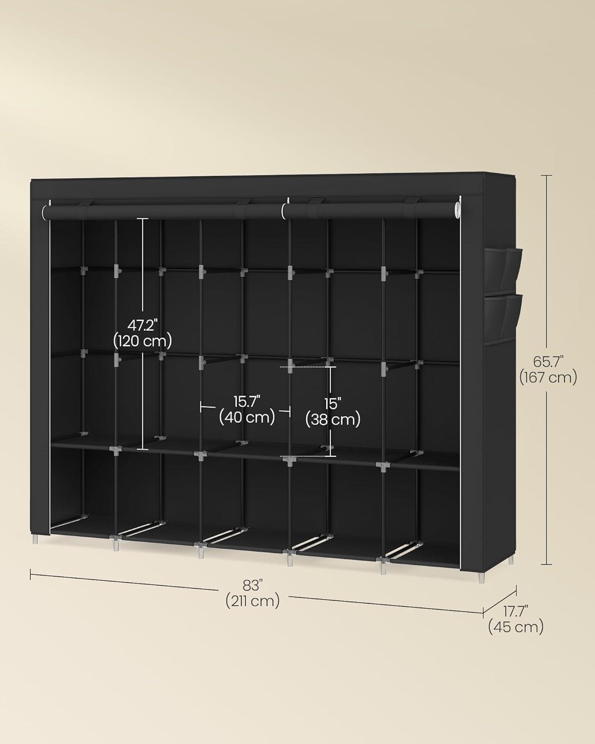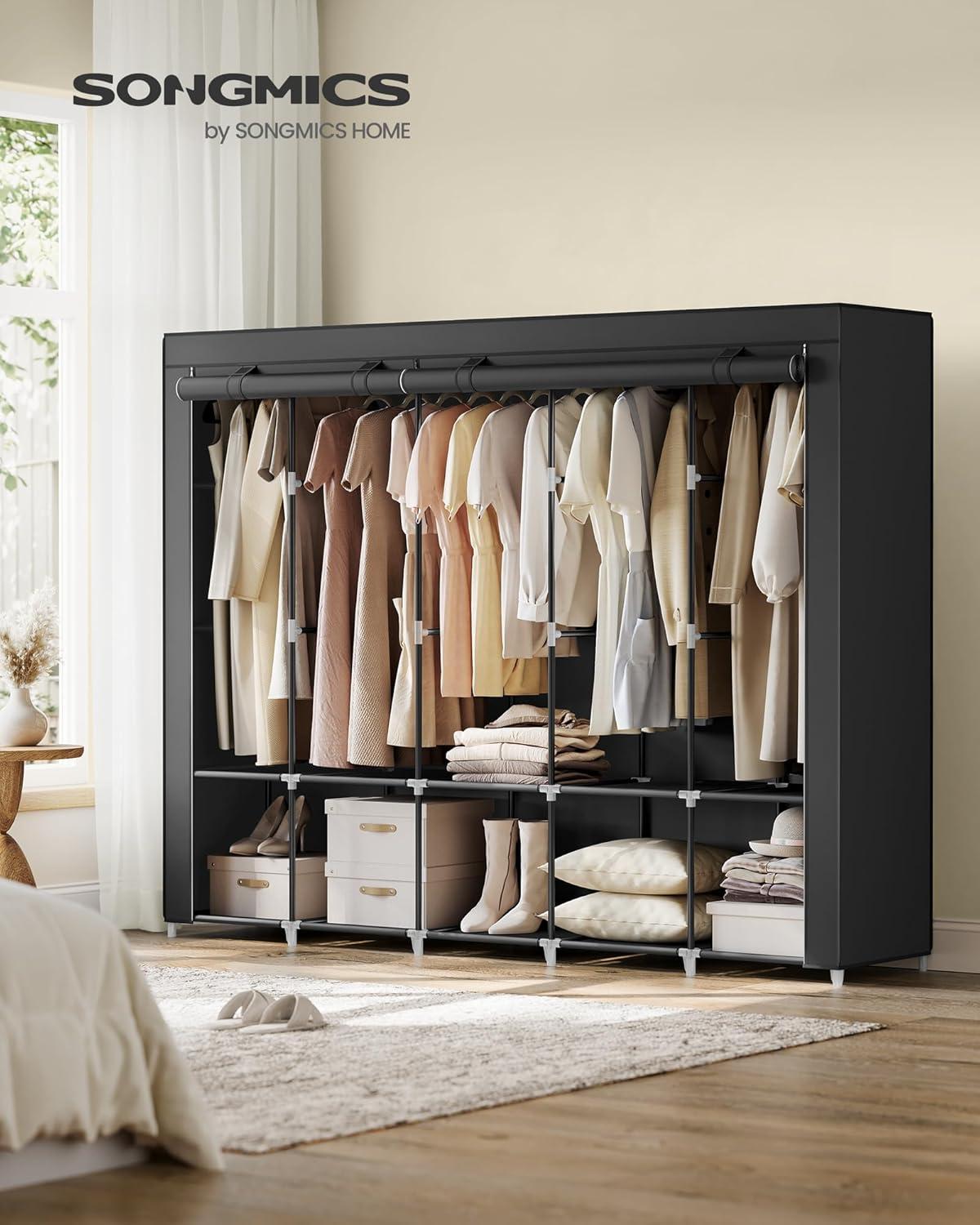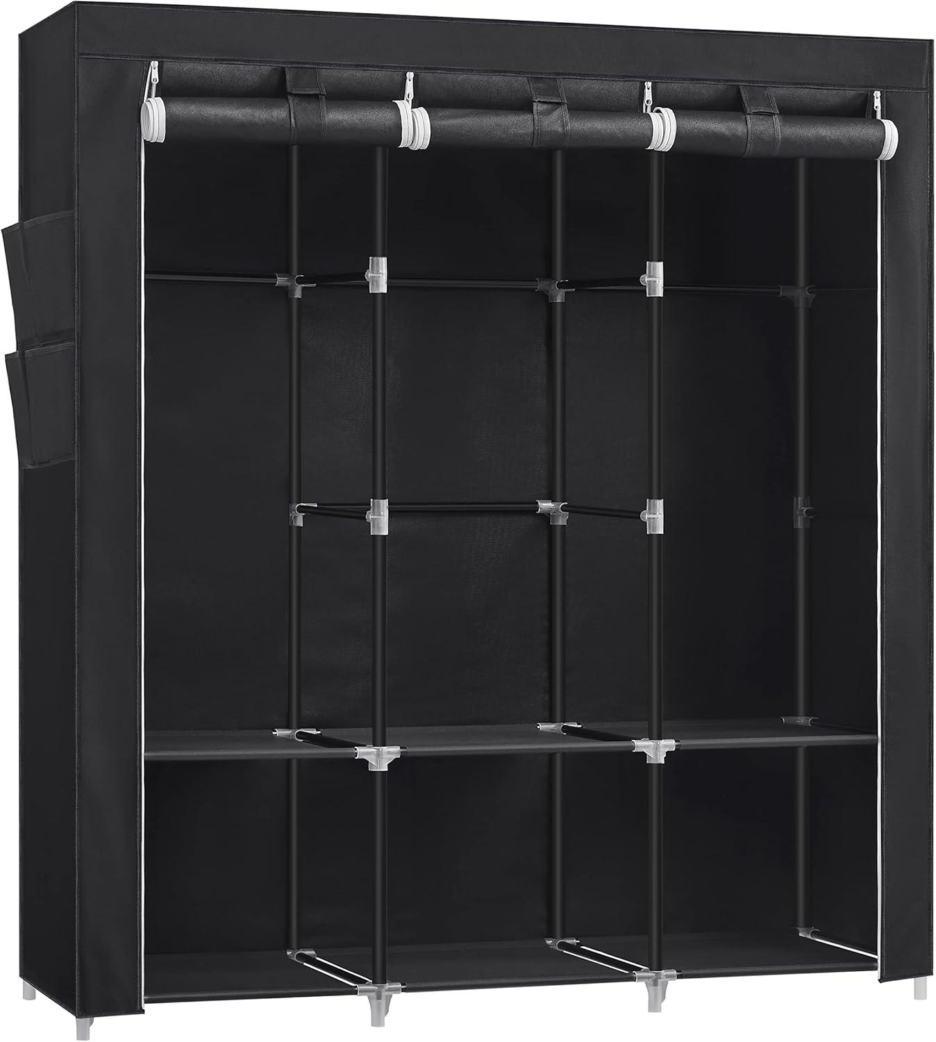 SONGMICS Portable Closet, Wardrobe Closet Organizer with Cover, 4 Hanging Rods and Shelves, 4 Side Pockets, 66.9 x 17.7 x 65.7 Inches, Large Capacity for Bedroom, Living Room, Gray URYG094G02(Ink Black)