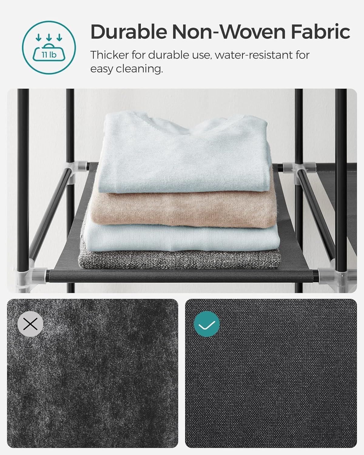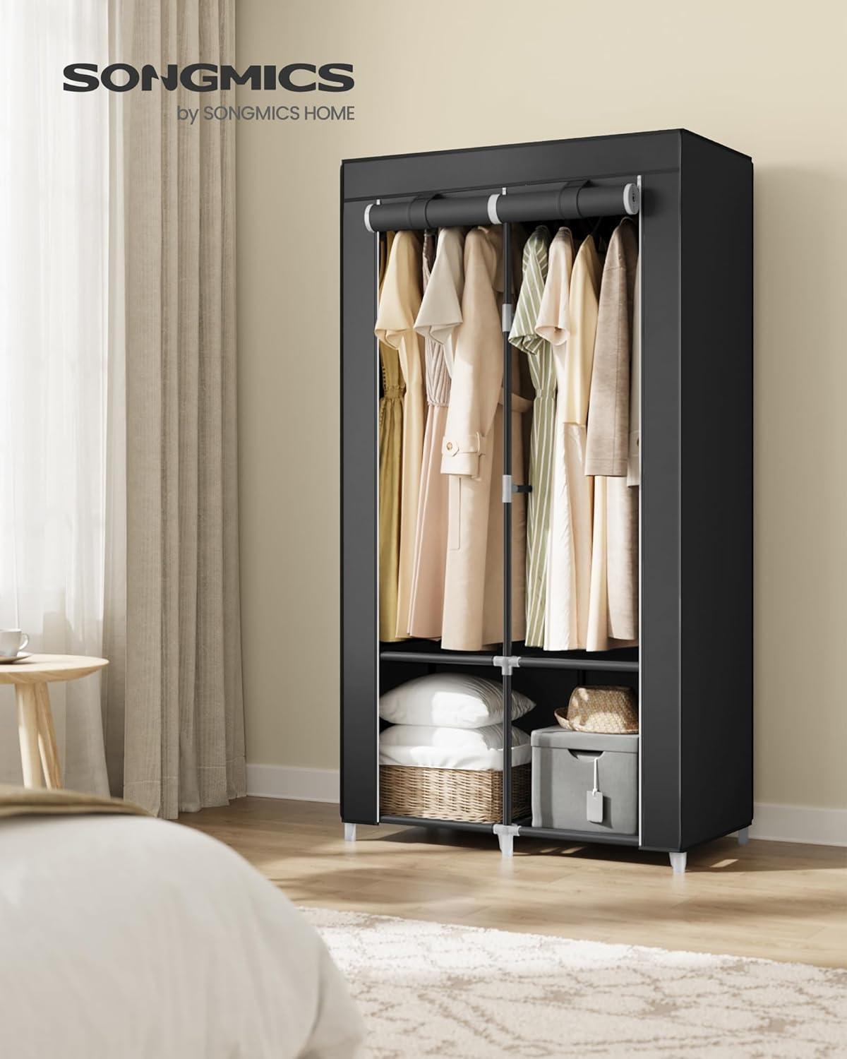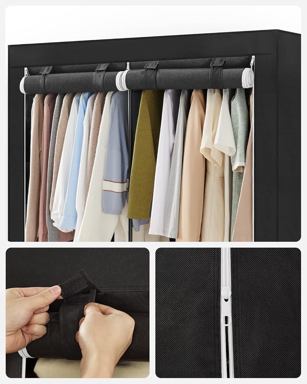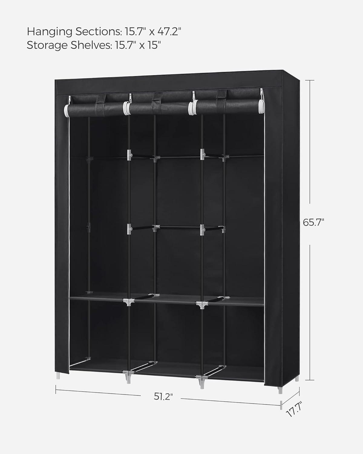 SONGMICS Portable Closet, Wardrobe Closet Organizer with Cover, 4 Hanging Rods and Shelves, 4 Side Pockets, 66.9 x 17.7 x 65.7 Inches, Large Capacity for Bedroom, Living Room, Gray URYG094G02(Ink Black)