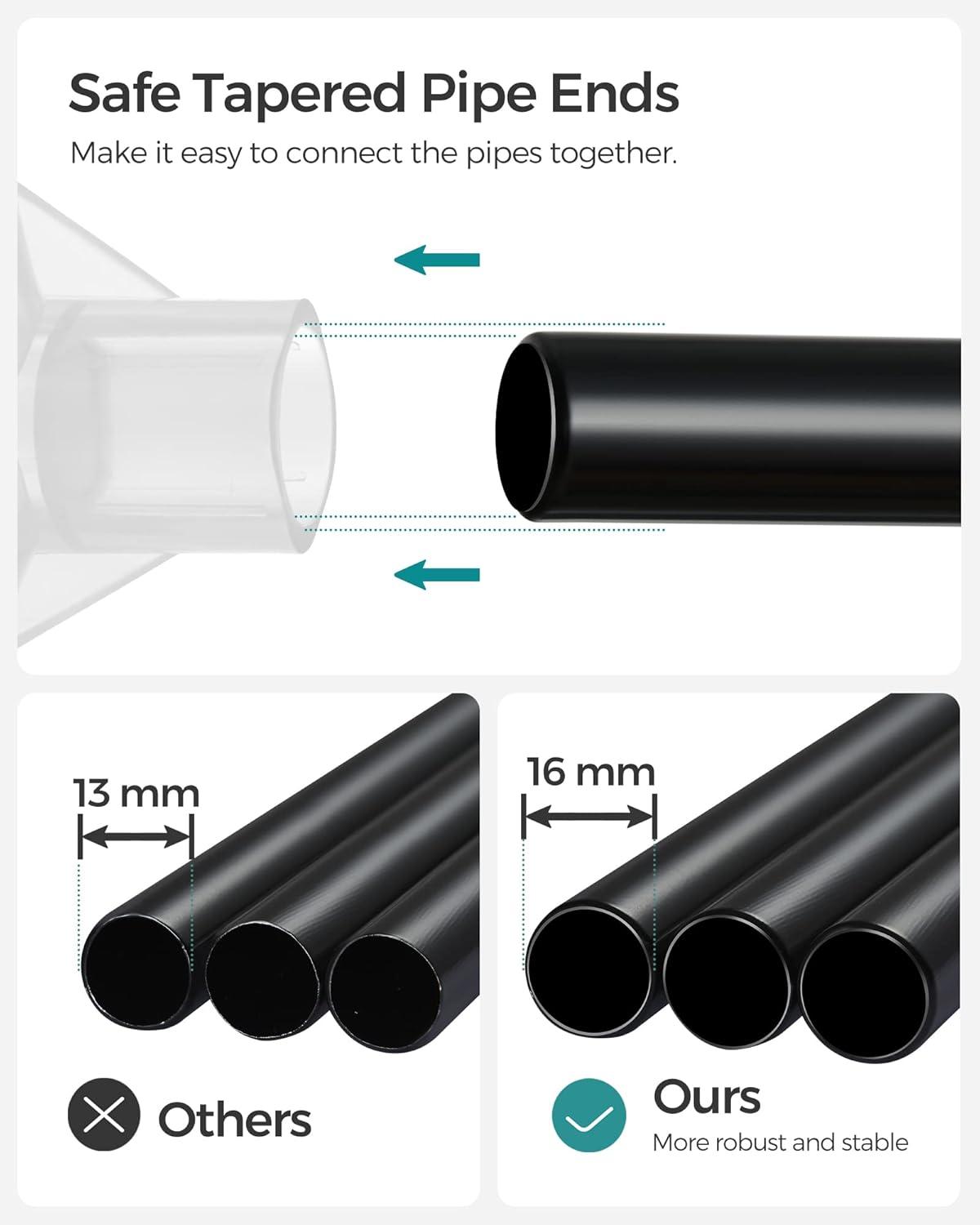 [Sturdy with High Load Capacity] Made with 0.6″ dia. steel tubes and reinforced plastic joints, this clothes rack provides solid support for your clothes (max. static load per rod: 33 lb)