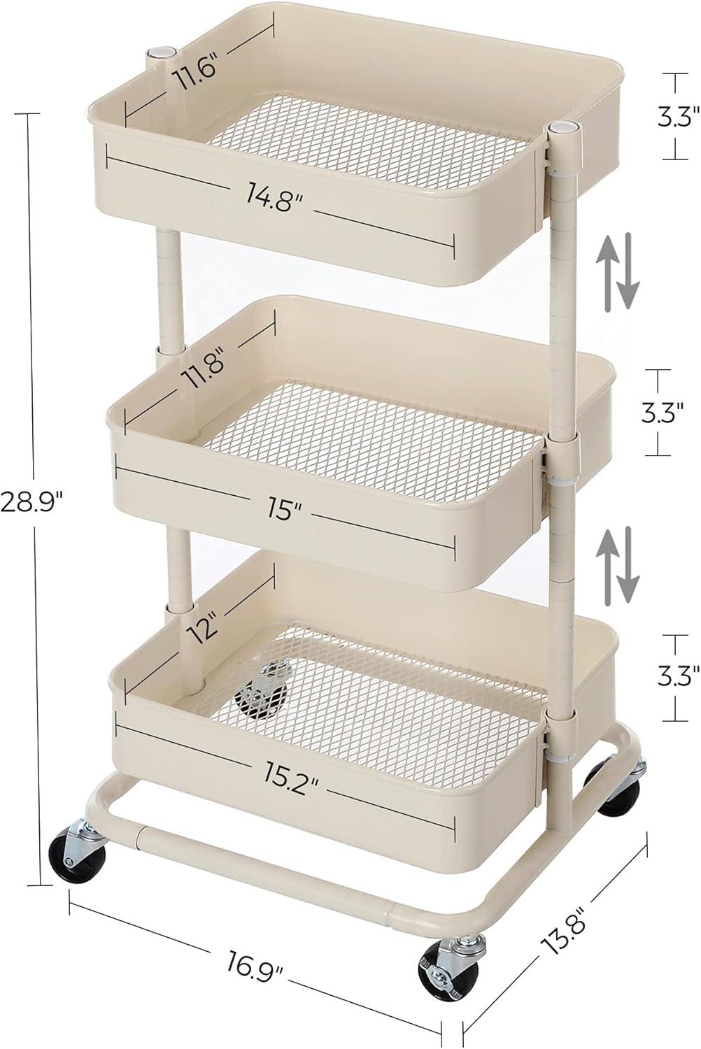 A Reliable Sidekick: Think of this utility cart as your reliable sidekick, because it has the strength: 3 plastic baskets are sturdily supported by steel tubes; each of them can hold up to 22 lb, which ensures you a durable, long-lasting companion