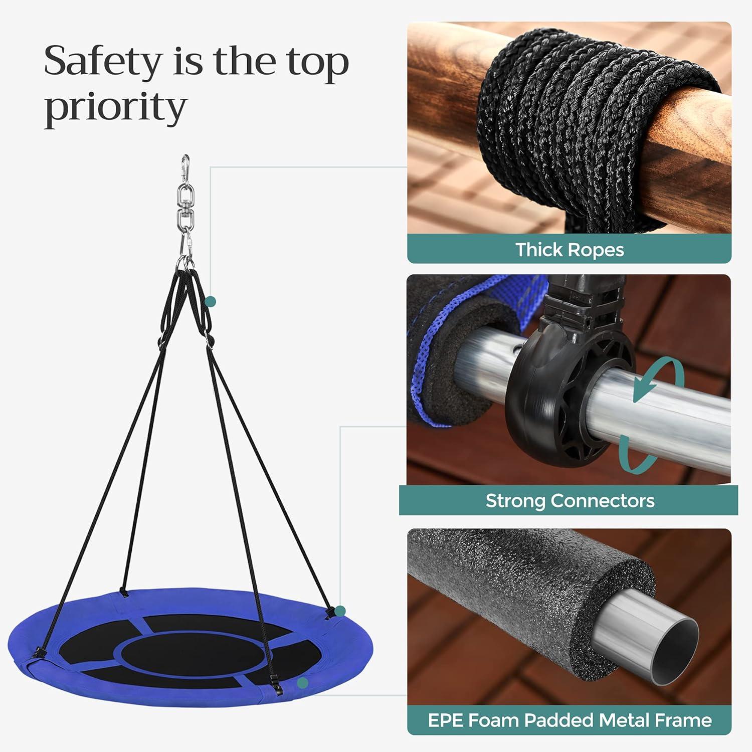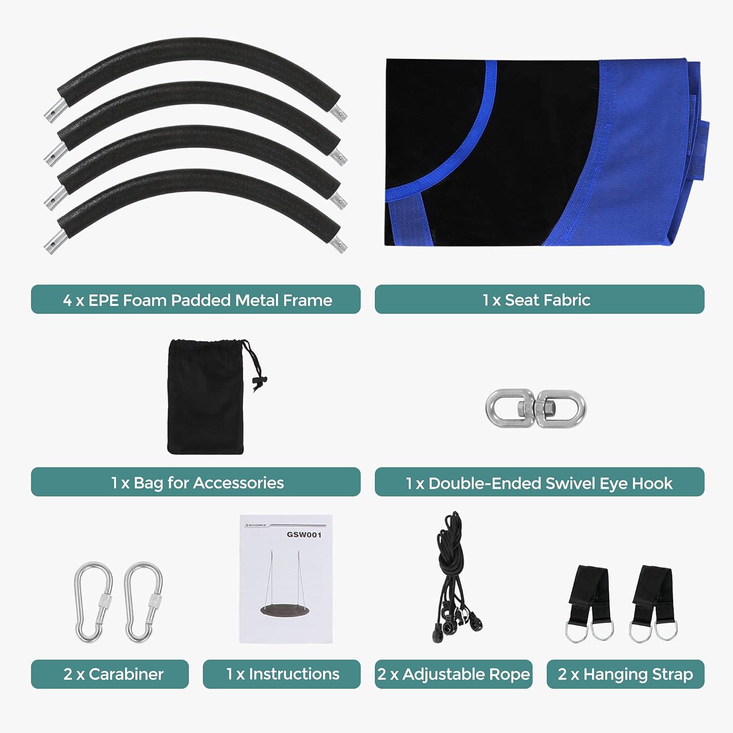SONGMICS Saucer Tree Swing, 40 Inch, 700 lb Load, Includes Hanging Kit, Blue and Black UGSW001Q01