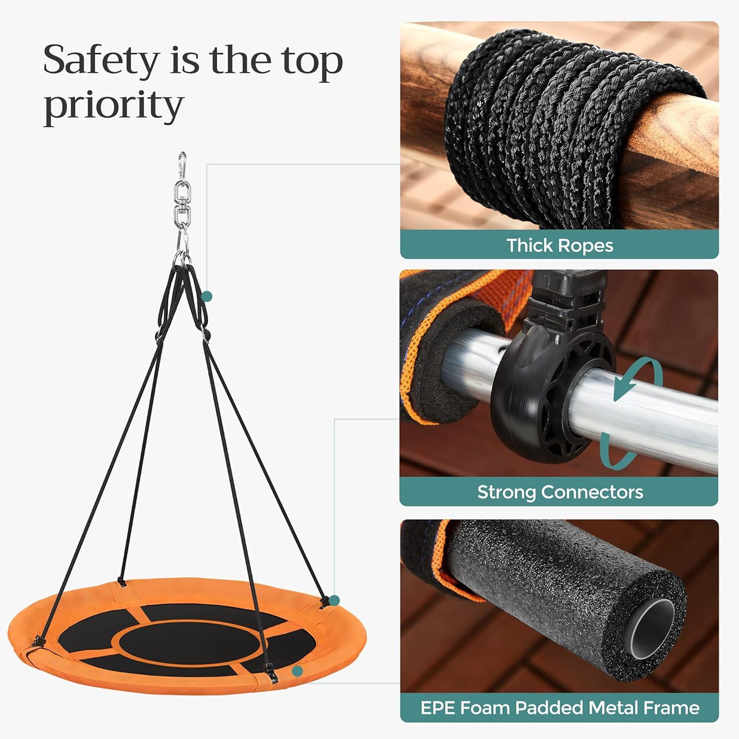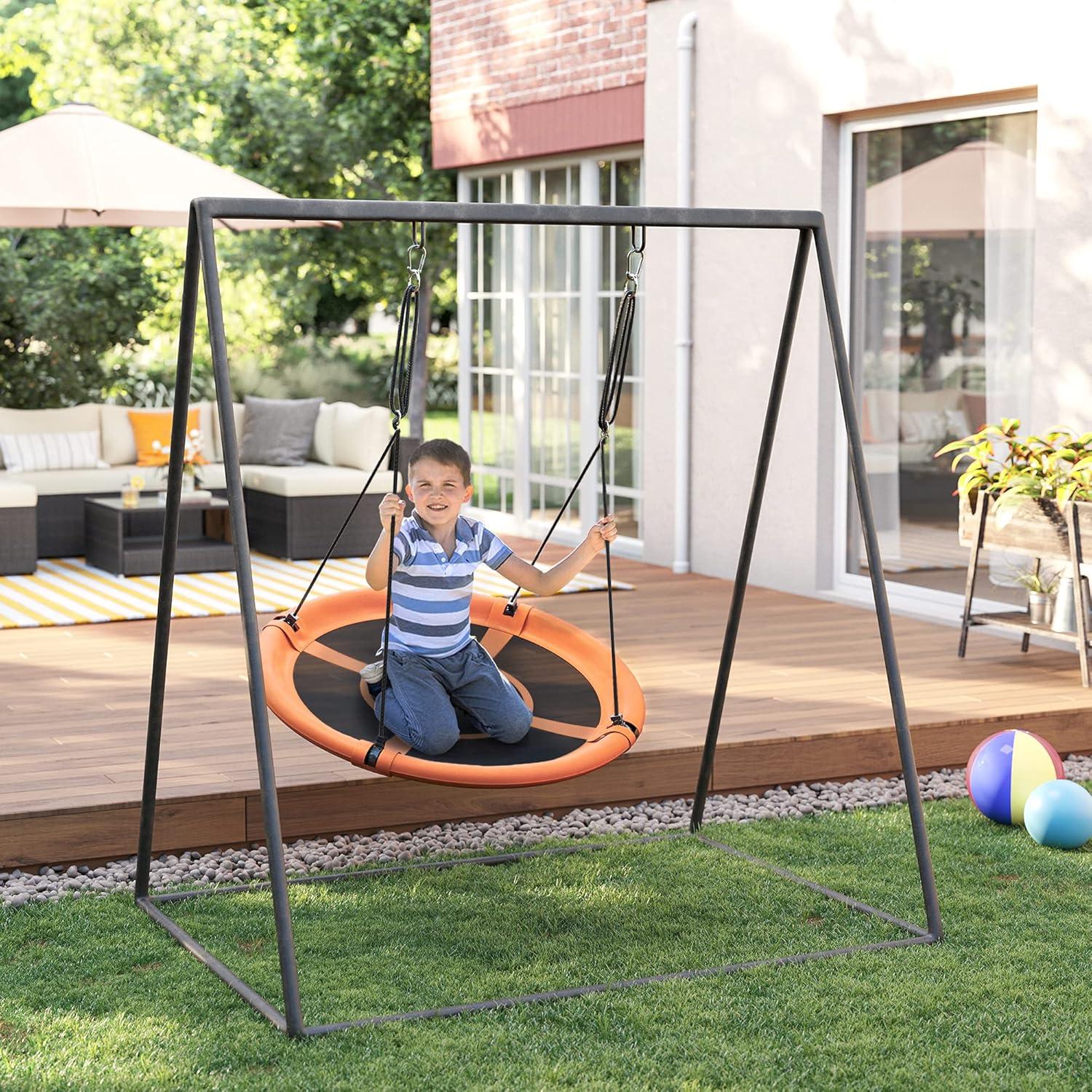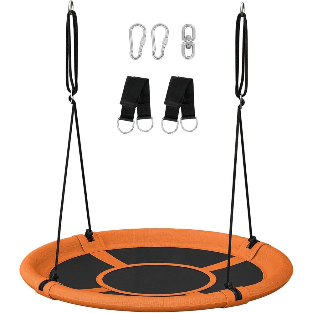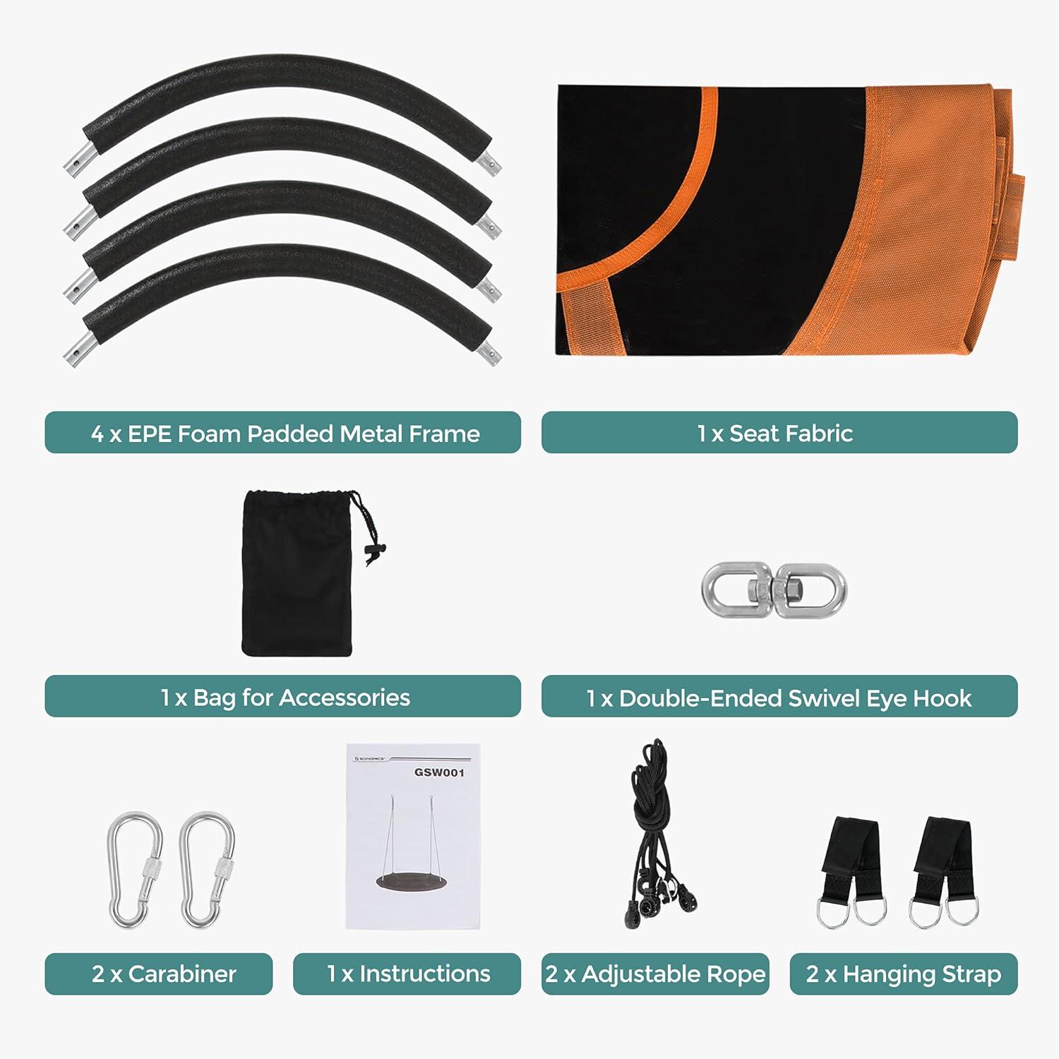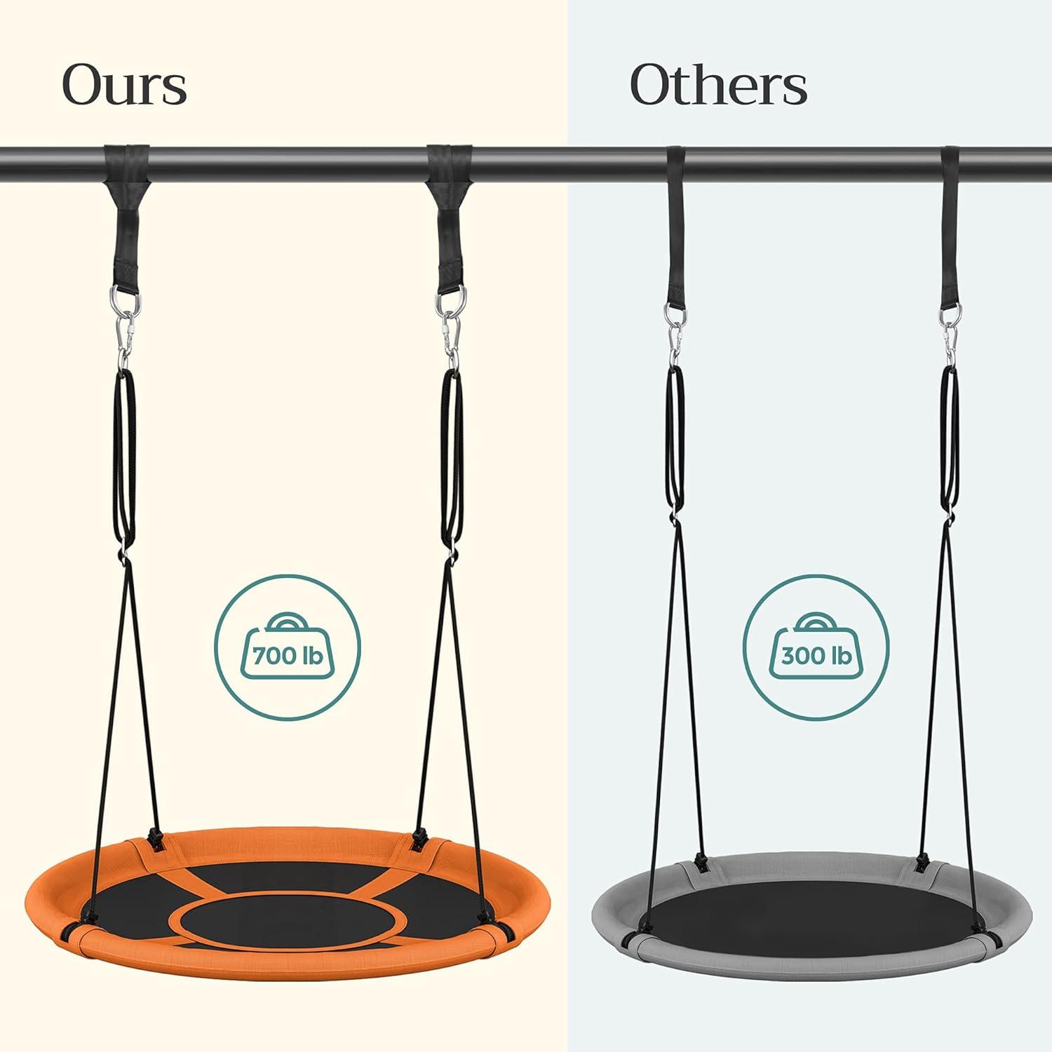 SONGMICS Saucer Tree Swing 40 Inch 700 lb Load Textilene Fabric Includes Hanging Kit for Kids Outdoor Indoor Heavy Duty Safe Durable Easy Install Backyard and Home Orange and Black UGSW001O01