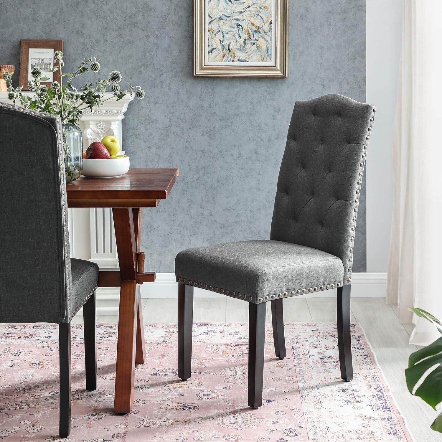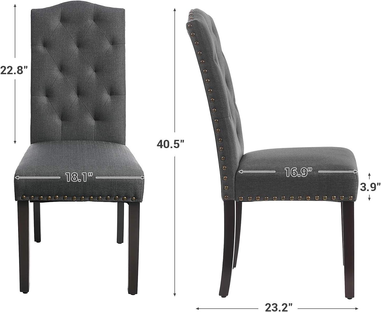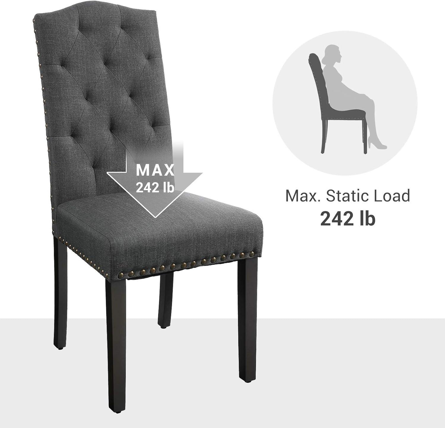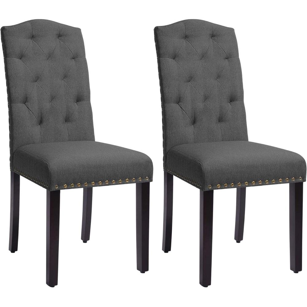 SONGMICS Set of 2 Dining Chairs with High Back, Tufted Design, Solid Wood Legs, Upholstered Stools, Cotton-Linen Blend Fabric, Dark Gray ULDC028G02(Dark Gray)