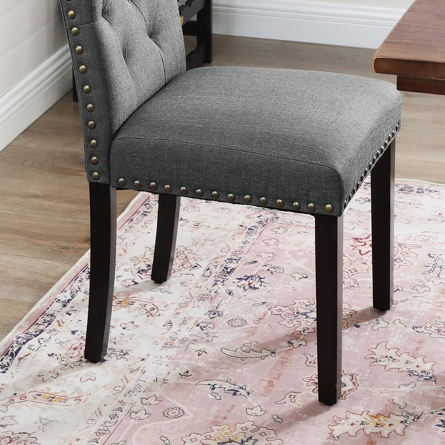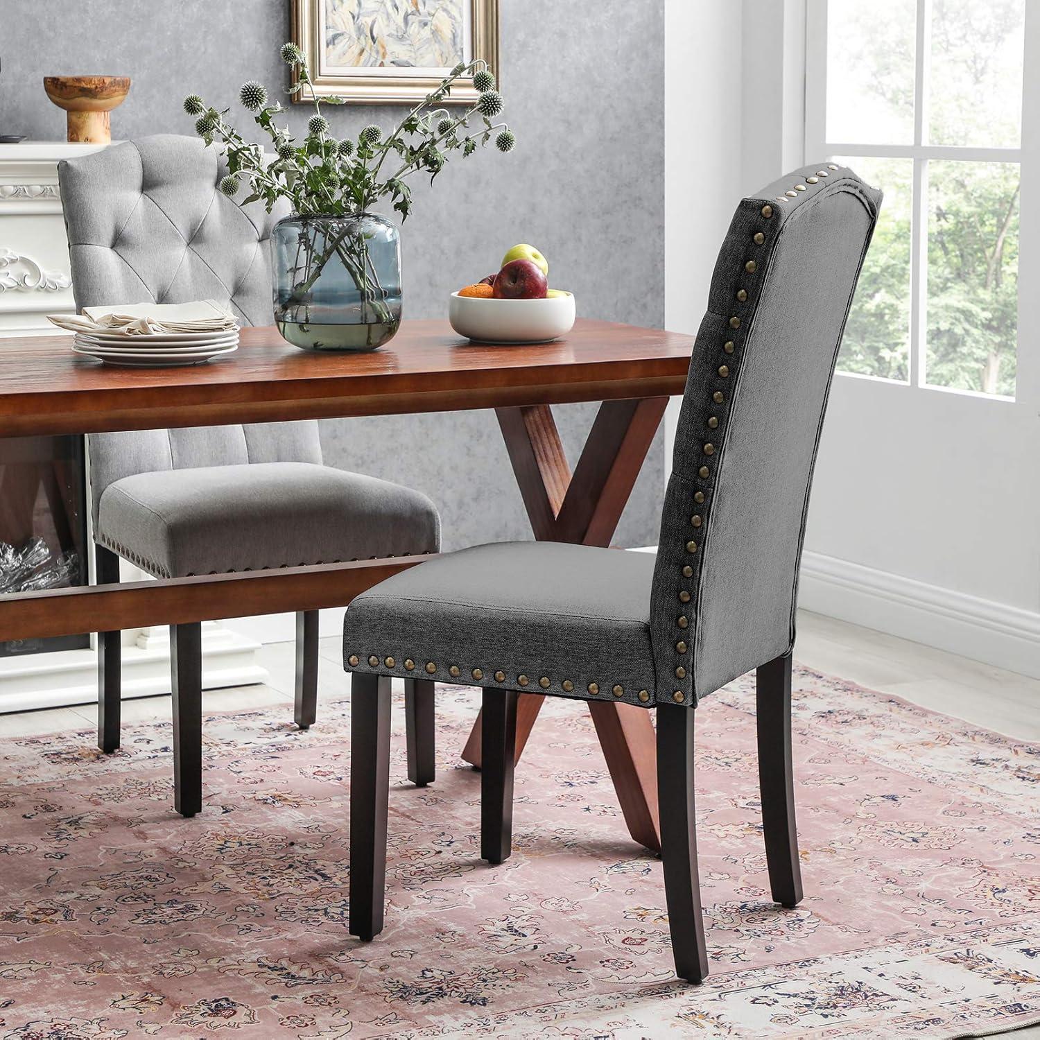 APPETIZER OF THE MEAL: Fancy, decorative studs along the edges, a tufted design, and curved back—this set of elegant, chic dining chairs is a feast for the eyes, which will be a wonderful start of your dinner time, all before the dishes are served