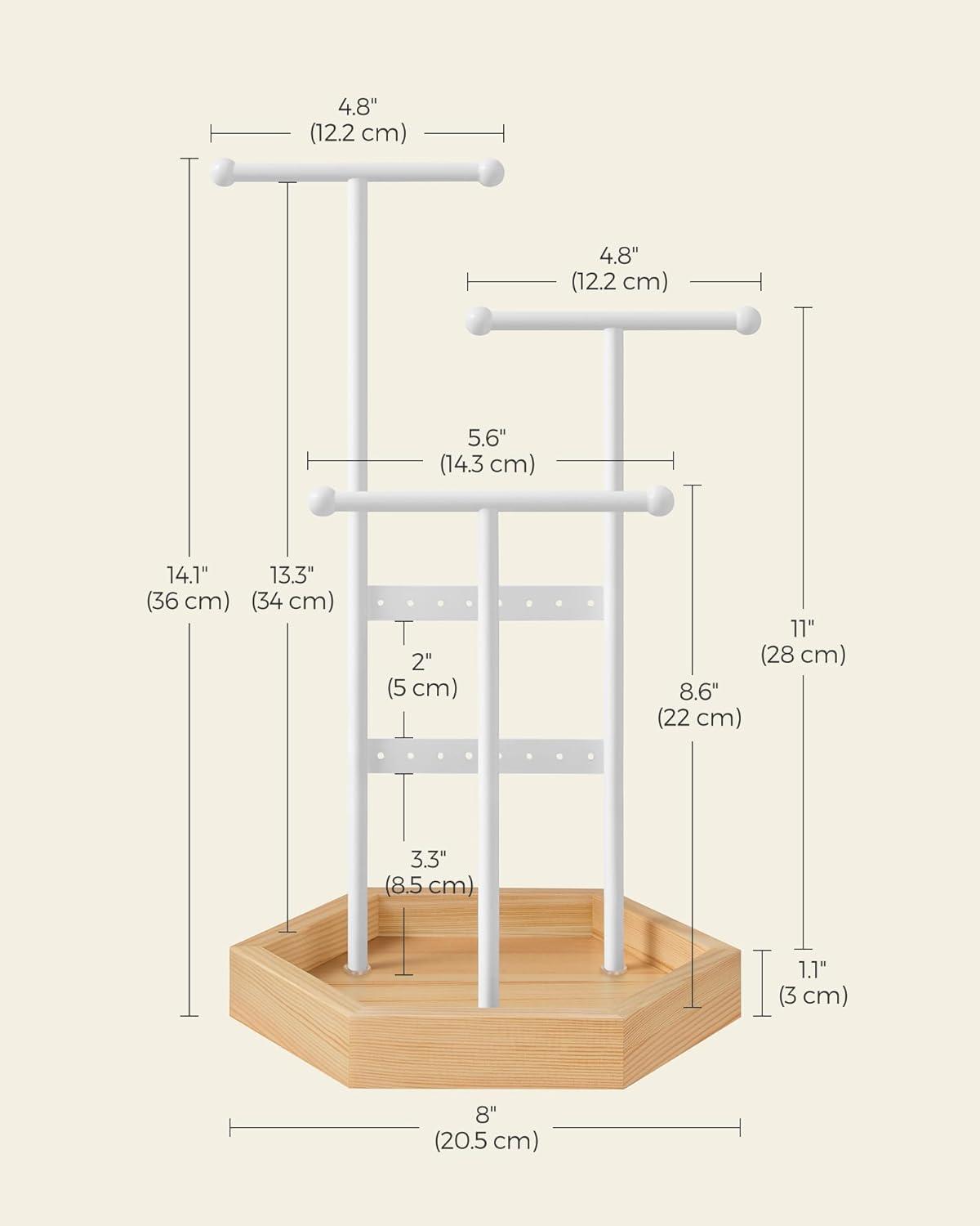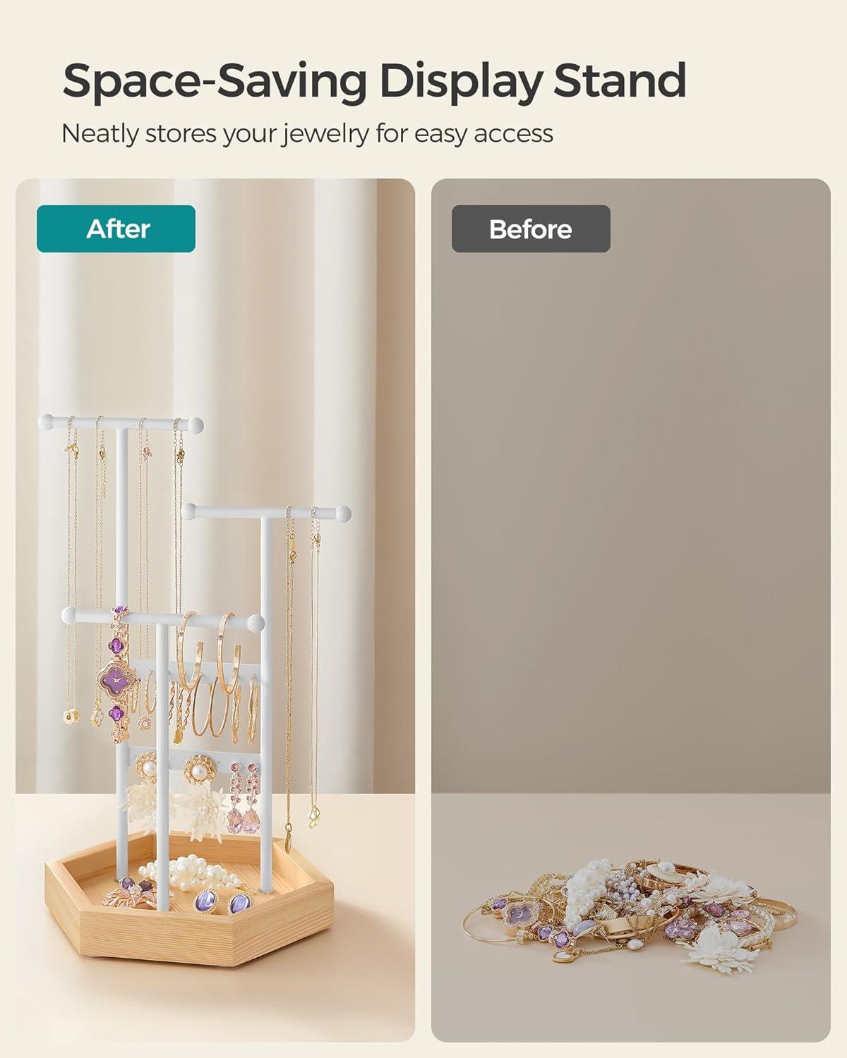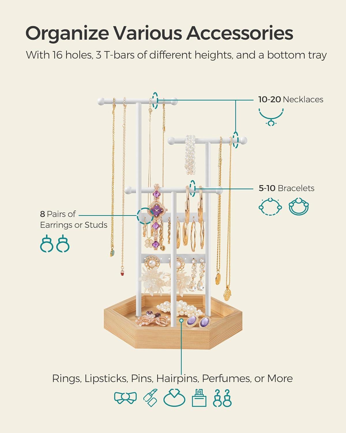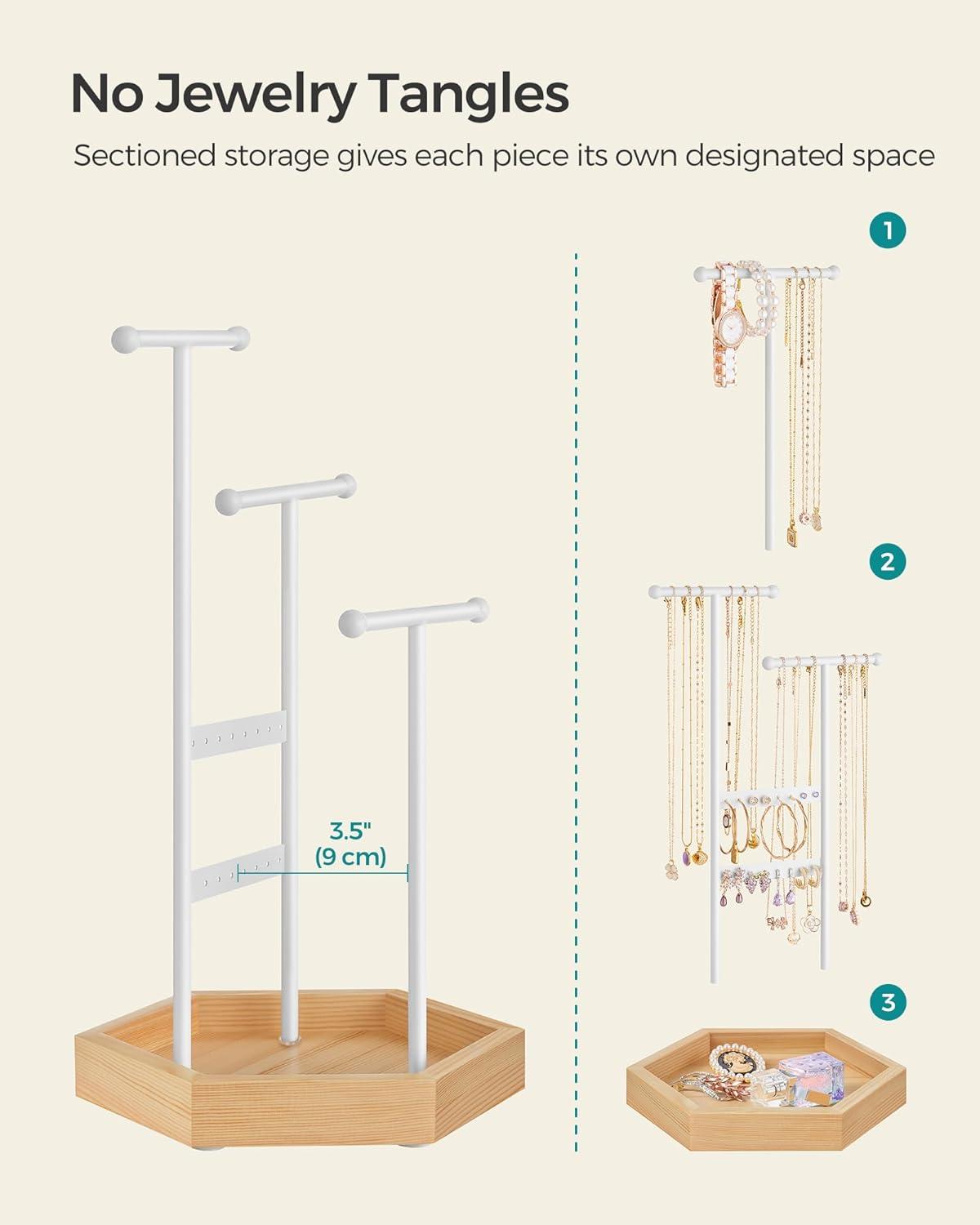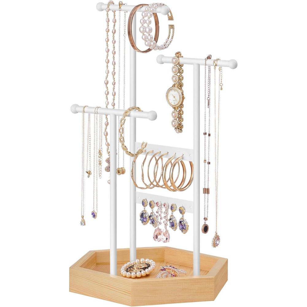 [Sturdy, Durable, and Stable] Each jewelry stand is a stable and safe haven for your treasured jewelry, thanks to a hexagonal base and 3 metal T-bars arranged in a triangular distribution and securely screwed to the base