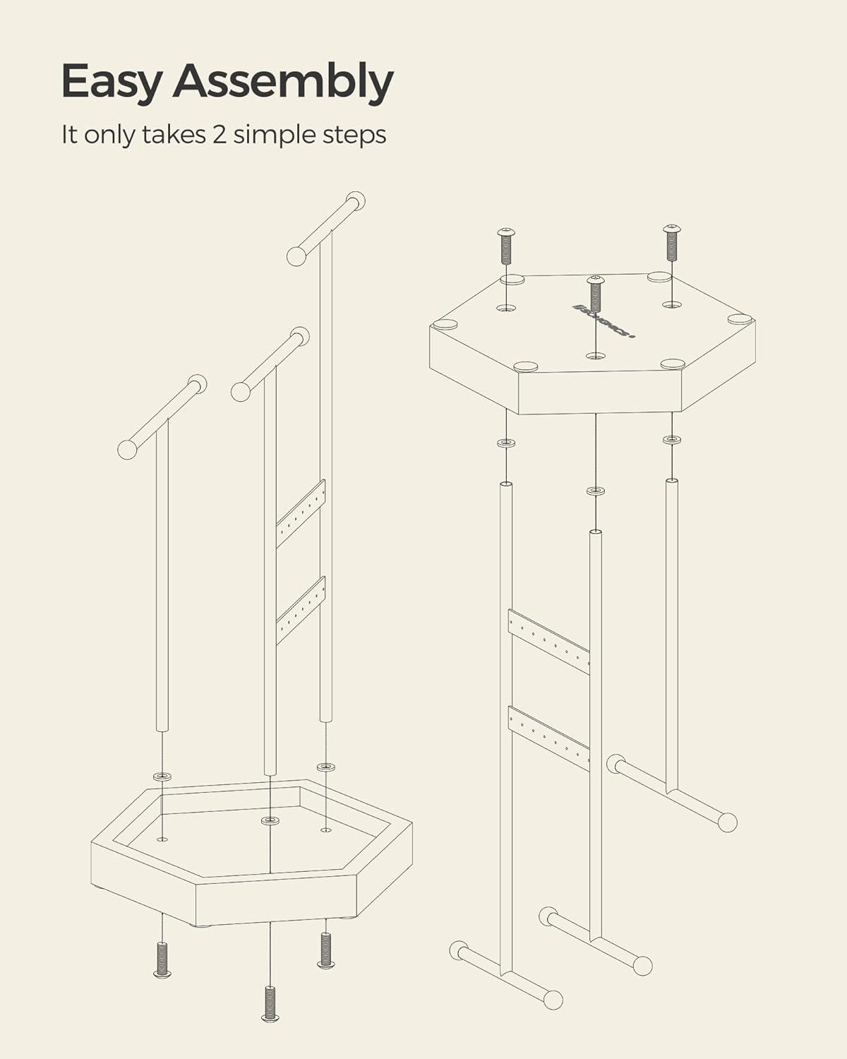 [Easy-Peasy Assembly] Each jewelry display stand is just 2 steps away: simply take out the base, screw the 3 metal T-bars to the base, and then it's ready to help you put your favorite jewelry collection on display