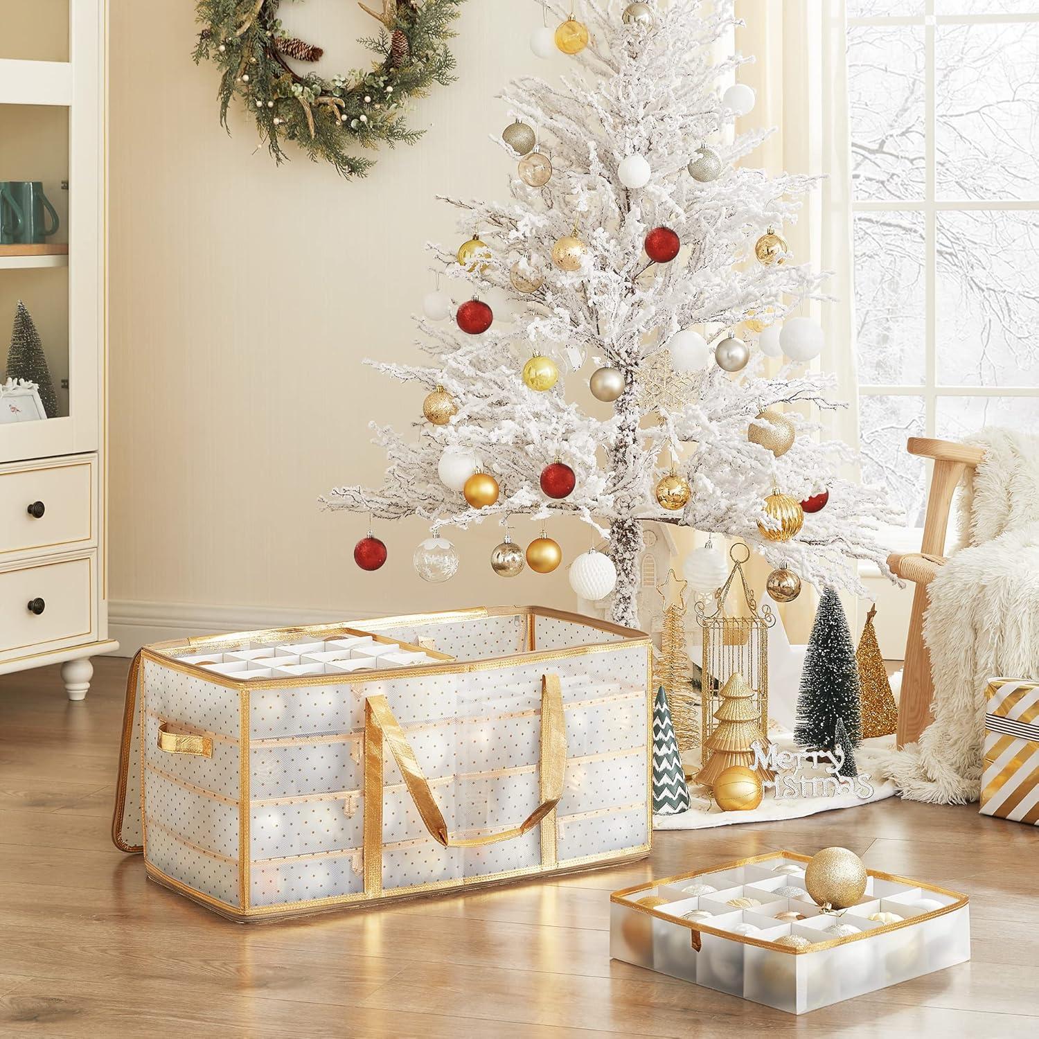 [Light up the Holiday] Set a festive and relaxing atmosphere with these Christmas ornament storage boxes featuring decorative dots and sandy gold edges. Basically, when these boxes come out, you know the holidays are here