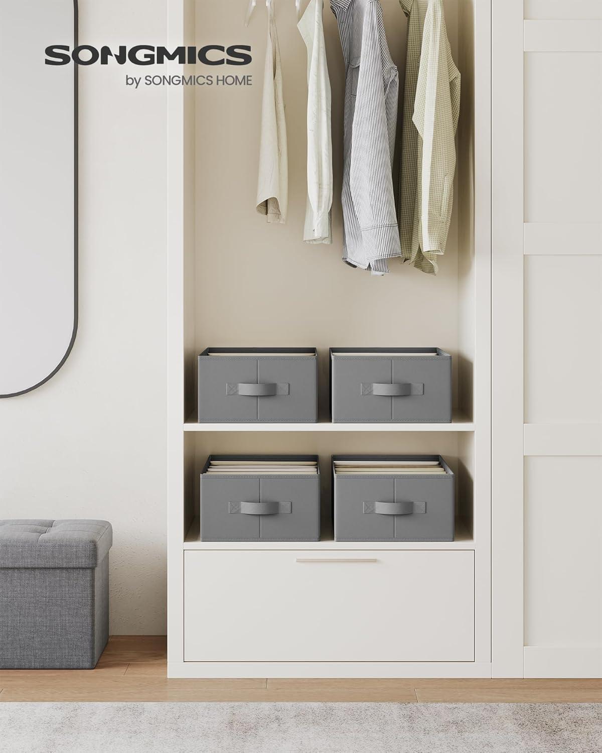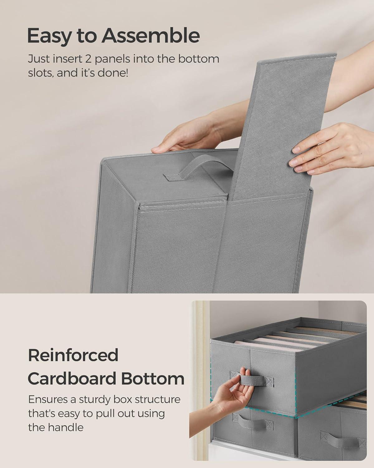 SONGMICS Set of 2 Large Size Wardrobe Clothes Organizers, 6-Compartment Foldable Drawer Organizers with Handles, 16.5 x 11.8 x 6.7 Inches, for Pants, Sweaters, Jeans, Dove Gray URUS009G02(Dove Gray)