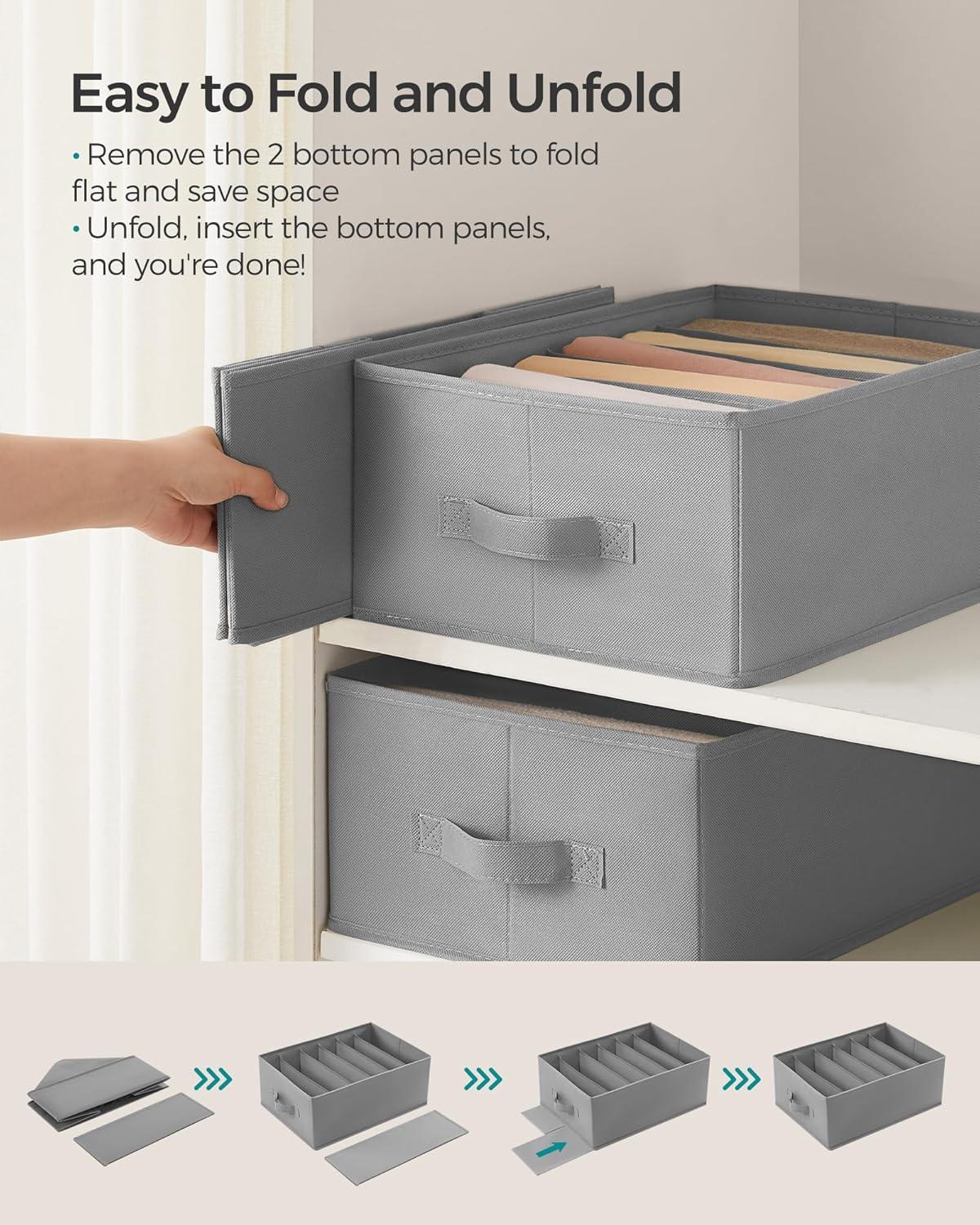 [Versatile] This set of closet organizers with dividers is versatile enough to fit into closets, wardrobes, drawers, shelves, or even under a bed. When not in use, they can be easily folded up to save space