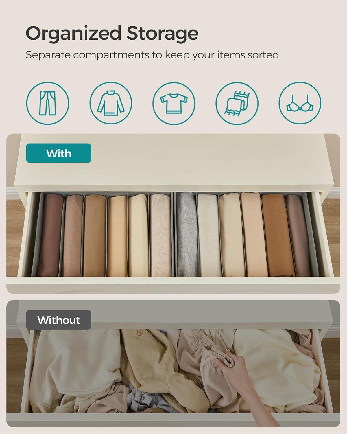 SONGMICS Set of 2 Large Size Wardrobe Clothes Organizers, 6-Compartment Foldable Drawer Organizers with Handles, 16.5 x 11.8 x 6.7 Inches, for Pants, Sweaters, Jeans, Dove Gray URUS009G02(Cloud White)