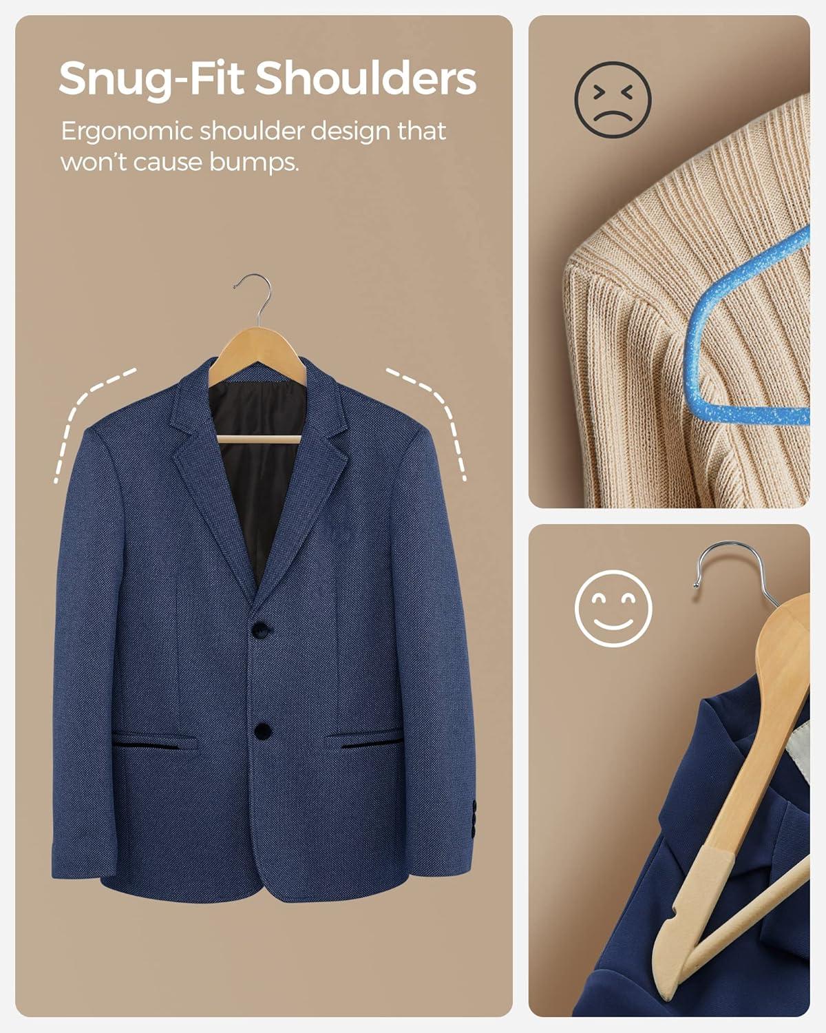 No Shoulder Bumps: The shoulder contour of these coat hangers mimic the curvature of human shoulders, keeping your suits in the original shape without getting any bumps