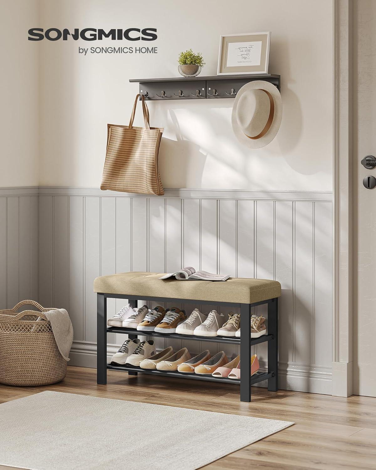 SONGMICS Shoe Bench, Storage Bench, Entryway Bench with Cushion, Shoe Shelf with Seat, Space-Saving, Modern Style, for Living Room, Bedroom, Hallway, Dark Gray and Ink Black ULBS57GYZ(Camel Brown + Ink Black)