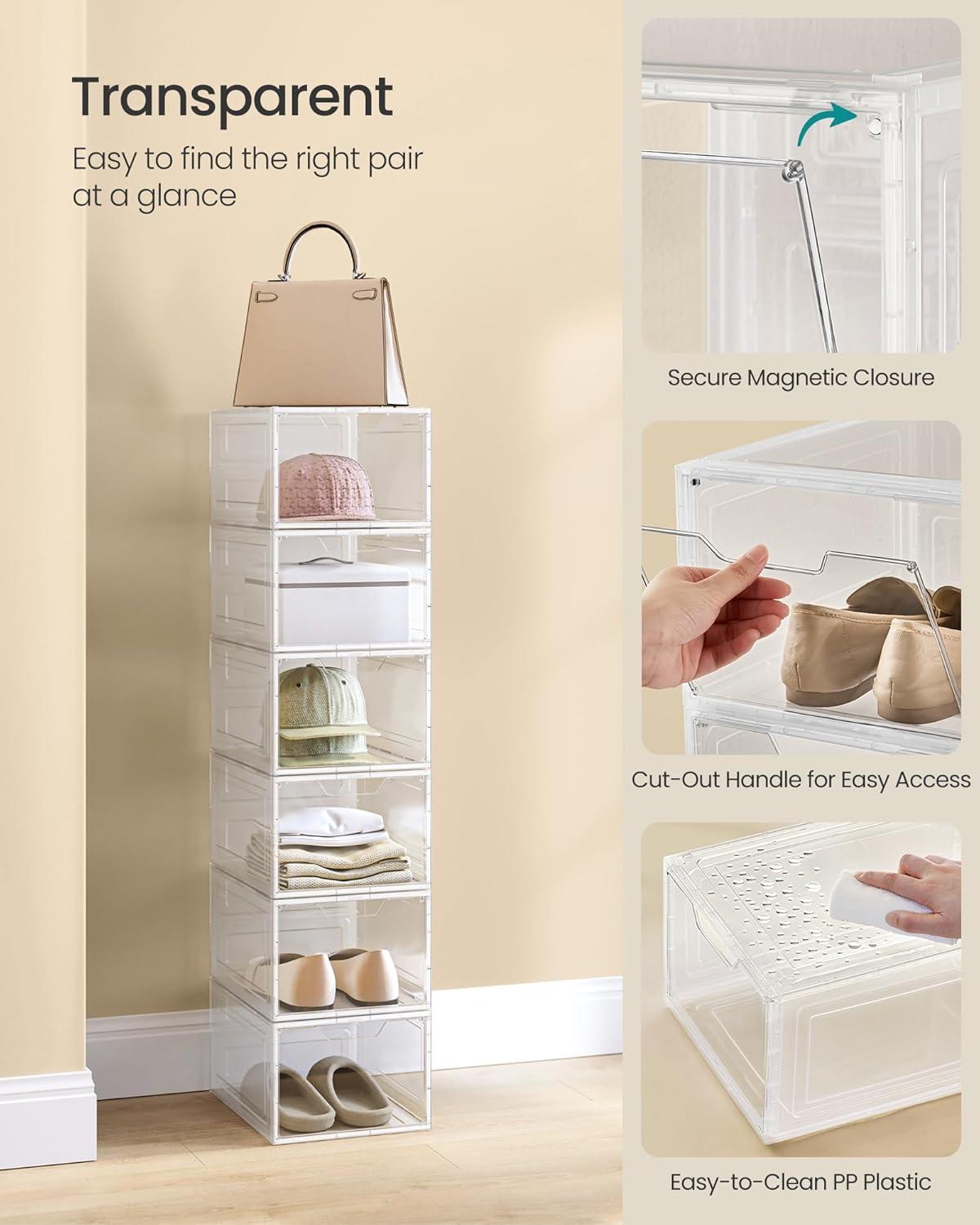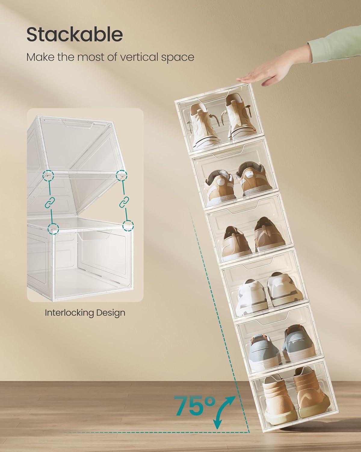 【FIRST, DISPLAY YOUR SHOES】Remember the tough mornings trying to find the right pair for the day? Display them in this set of 12 transparent white shoe boxes and grab the pair for your outfit, or, just make a picture-perfect array to let your shoes shine