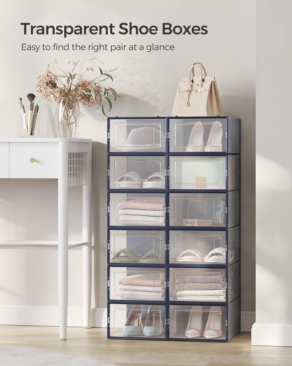 Tidy Up Your Space: Organize up to 12 pairs of shoes with these transparent shoe boxes, keeping your entire collection neatly arranged and easily accessible