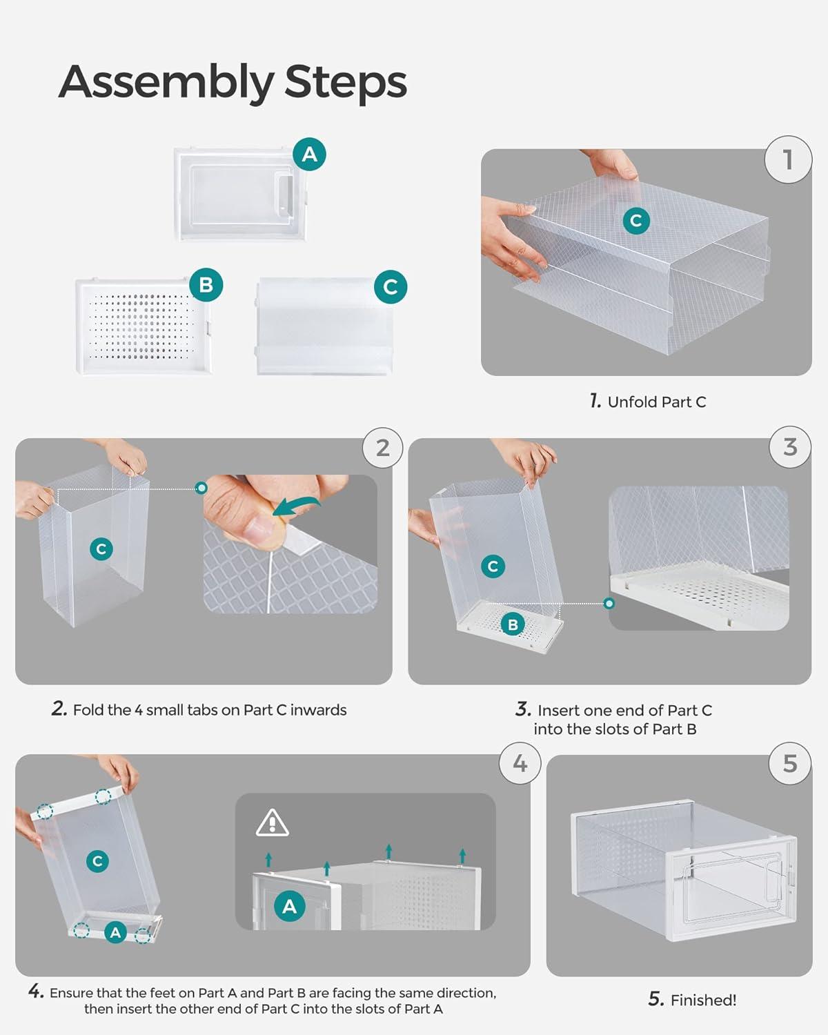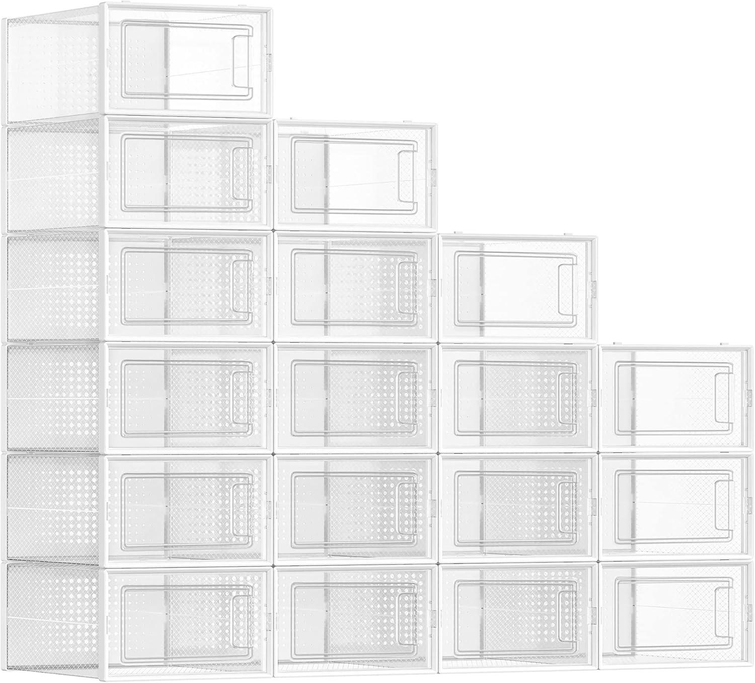 Stackable and Breathable: The snap-together design of these plastic boxes ensures stable stacking, while ventilation holes help keep your shoes fresh and well-ventilated