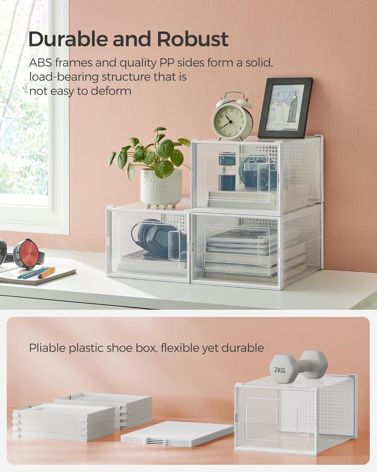 Tidy Up Your Space: Organize up to 12 pairs of shoes with these transparent shoe boxes, keeping your entire collection neatly arranged and easily accessible